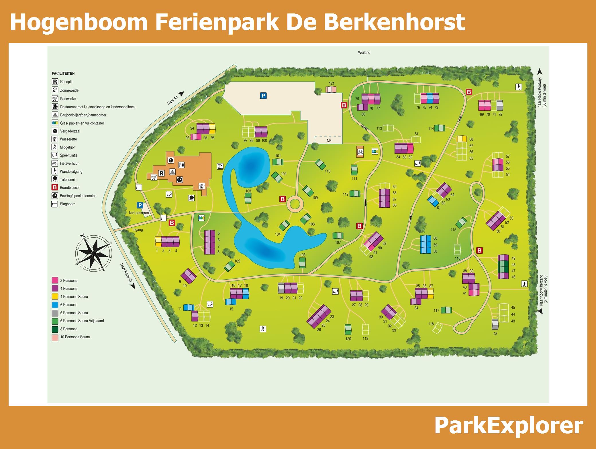 Aktueller und übersichtlicher Parkplan von Summio Parc De Berkenhorst mit alle Unterkünfte und Einrichtungen, auch als PDF herunterladbar.