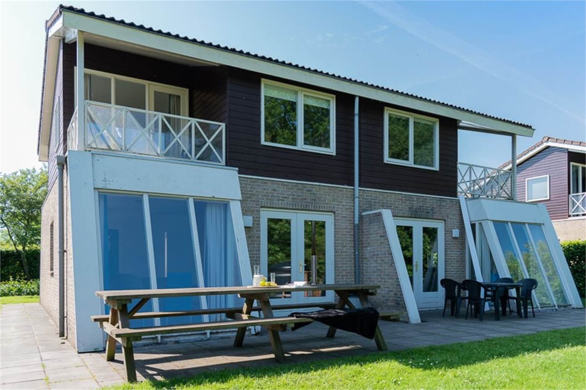 Dieser freistehende Bungalow eignet sich für 18 Personen. Im Erdgeschoss finden Sie ein gemütliches Wohnzimmer mit TV-Gerät und eine Küche mit u. a. Kaffeepadmaschine und Geschirrspüler. Außerdem gibt es 1 Schrankbett für 2 Personen und 1 Badezimmer mit Badewanne und 1 Badezimmer mit Dusche und Badewanne sowie 2 separate Toiletten. Im Obergeschoss befinden sich 6 Schlafzimmer mit insgesamt 16 Einzelbetten, 2 weitere Badezimmer mit begehbarer Dusche und eine separate Toilette. Im Außenbereich finden Sie einen schönen Garten mit Terrasse, Lounge-Set und Hot Tub. Der Bungalow bietet außerdem eine Sauna und einen Abstellraum. Es gibt Parkmöglichkeiten für 4 Autos und die Nutzung von WiFi ist gratis.
