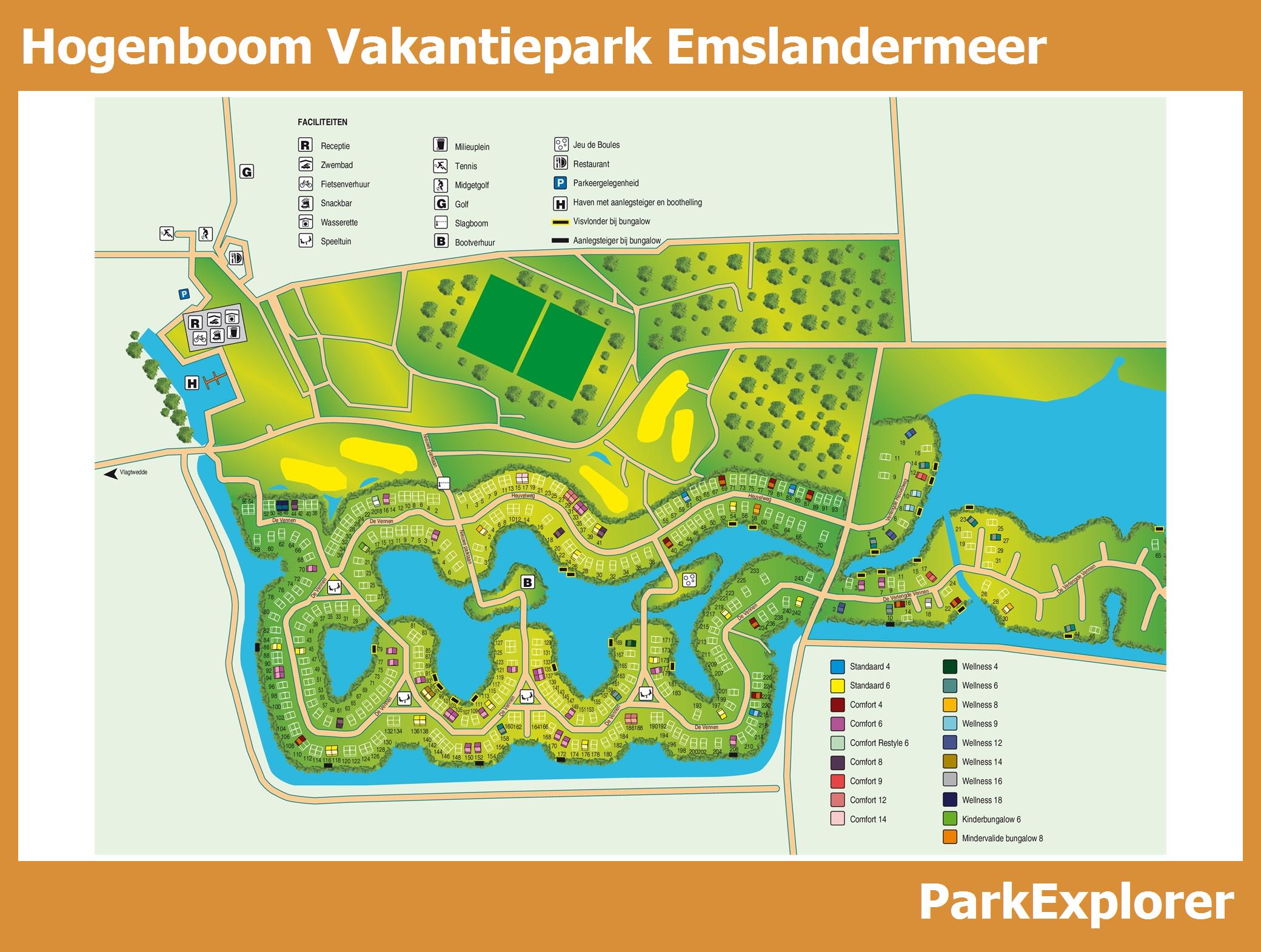 Aktueller und übersichtlicher Parkplan von Emslandermeer mit alle Unterkünfte und Einrichtungen, auch als PDF herunterladbar.