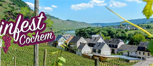 Am letzten Wochenende im August (24.08.2018 - 27.08.2018) feiert Cochem wieder sein jährliches Heimat- und Weinfest. Ein wirklich urgemütliches Volksfest, das zu den beliebtesten und bekanntesten Veranstaltungen an der Mosel gehört. Vier Tage lang steht Cochem ganz im Zeichen von Musik, Weinproben, Geselligkeit und gutem Essen. Am Sonntag findet außerdem ein großer Umzug durch den Ort statt und zum Ausklang am Abend wird ein fantastisches Feuerwerk geboten!