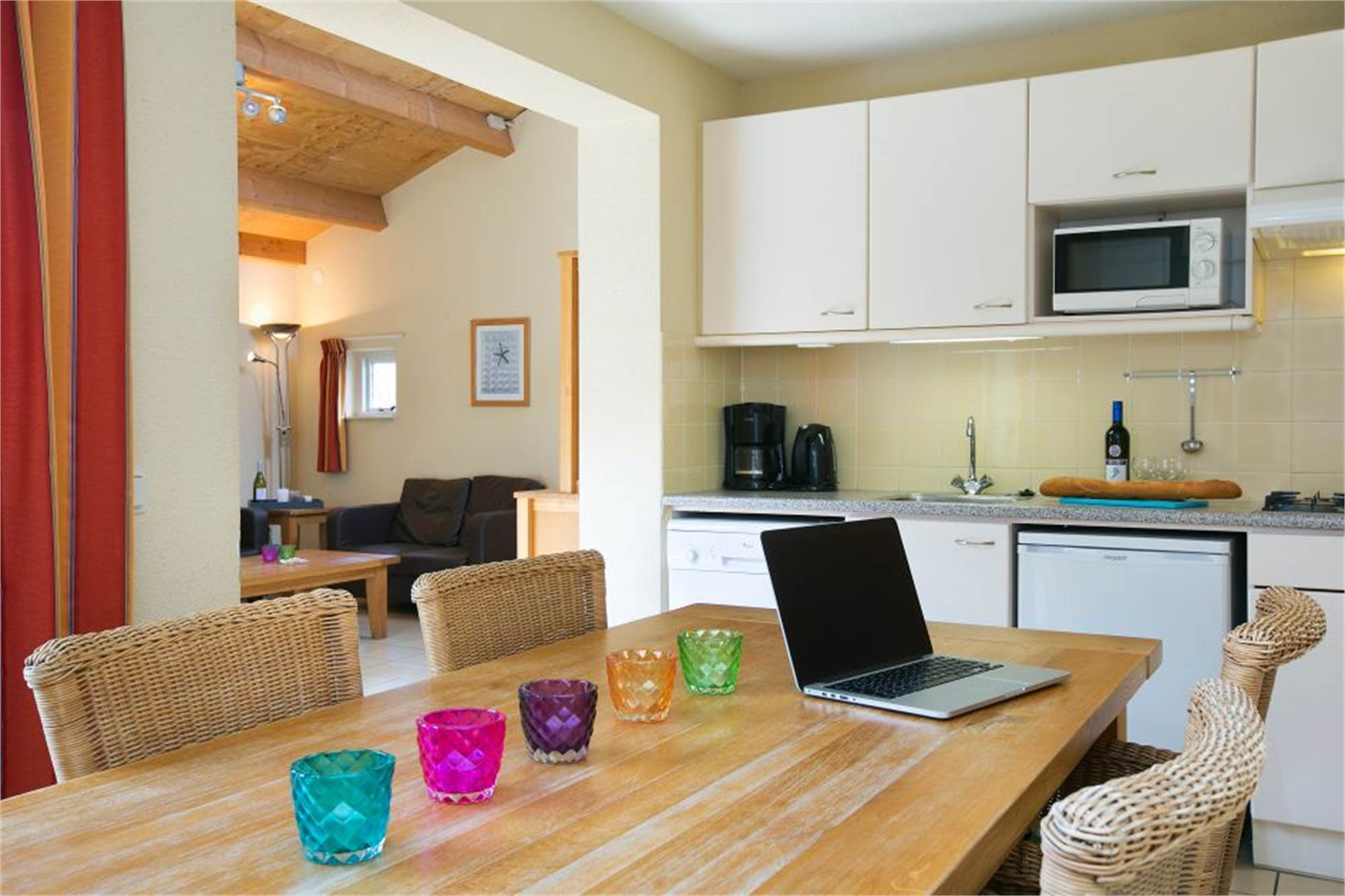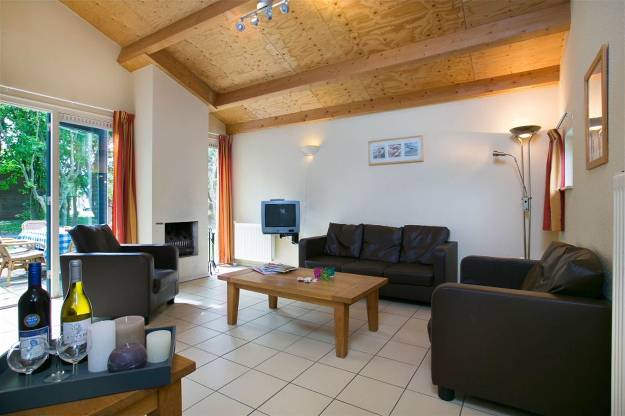 Dieser Bungalow für 6 Personen hat ein Wohnzimmer mit offener Feuerstelle, einem Essbereich und eine offene Küche. Es gibt drei Schlafzimmer und ein Badezimmer mit Dusche und/oder Badewanne und einem Waschbecken. Zudem gibt es eine separate Toilette. Draußen finden Sie ein separates Lager, sowie eine möblierte Terrasse. Sie haben die Möglichkeit WiFi gratis zu nutzen.