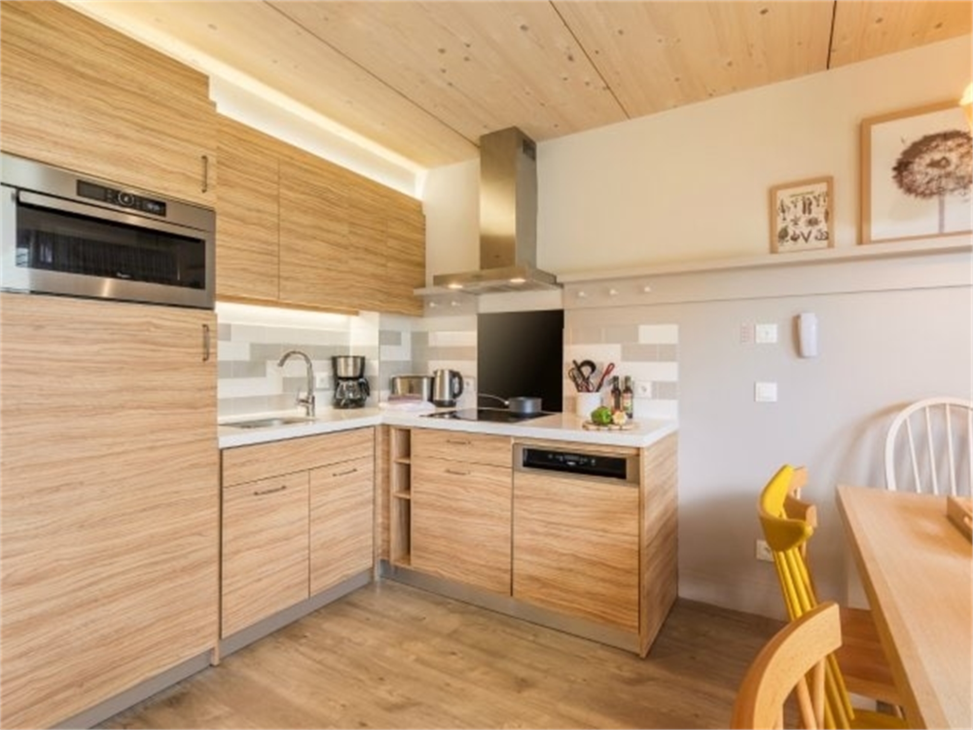 Voll ausgestattete amerikanische Küche: Geschirr, Geschirrspülmaschine, Spülset, Mikrowelle mit Grillfunktion, Induktionsherd (4 Kochstellen), Dunstabzugshaube, Kühlschrank, Kaffeemaschine, NESCAFÉ Dolce Gusto, Wasserkocher, Toaster, Abfallbehälter für die Mülltrennung