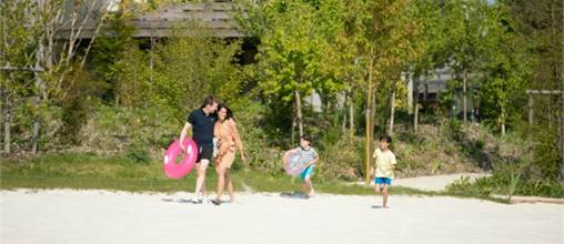 Genießen Sie die Sonne, um in diesem natürlich von Pflanzen gefilterten See zu schwimmen, Sandburgen am Strand zu bauen oder sich einfach in einer Liege zu sonnen.