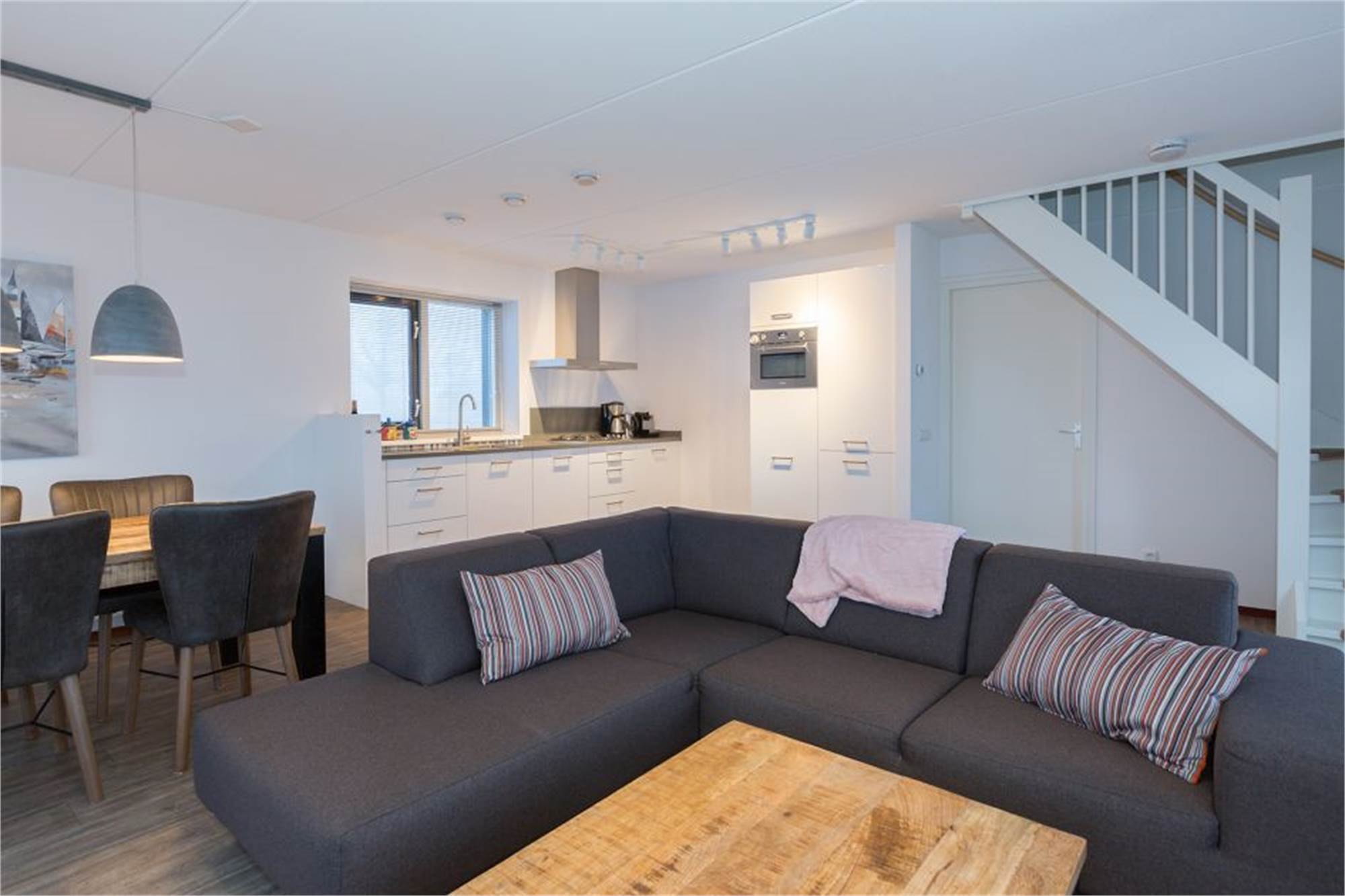 Dieser freistehende Bungalow ist für 8 Personen geeignet. Im Erdgeschoss befindet sich das Wohnzimmer mit Smart TV und einer Essecke. In der offenen Küche finden Sie unter anderem einen Geschirrspüler und eine Kombi-Mikrowelle. Daneben befindet sich im Erdgeschoss ein Schlafzimmer, das über zwei Einzelbetten verfügt, sowie ein Bad mit bodengleicher Dusche und Toilette. Oben liegen drei weitere Schlafzimmer mit je zwei Einzelbetten sowie ein Bad mit bodengleicher Dusche und Toilette. Der Garten verfügt über eine möblierte Terrasse. Sie können ein Fahrzeug am Bungalow parken. Außerdem steht Ihnen kostenloses WLAN zur Verfügung.