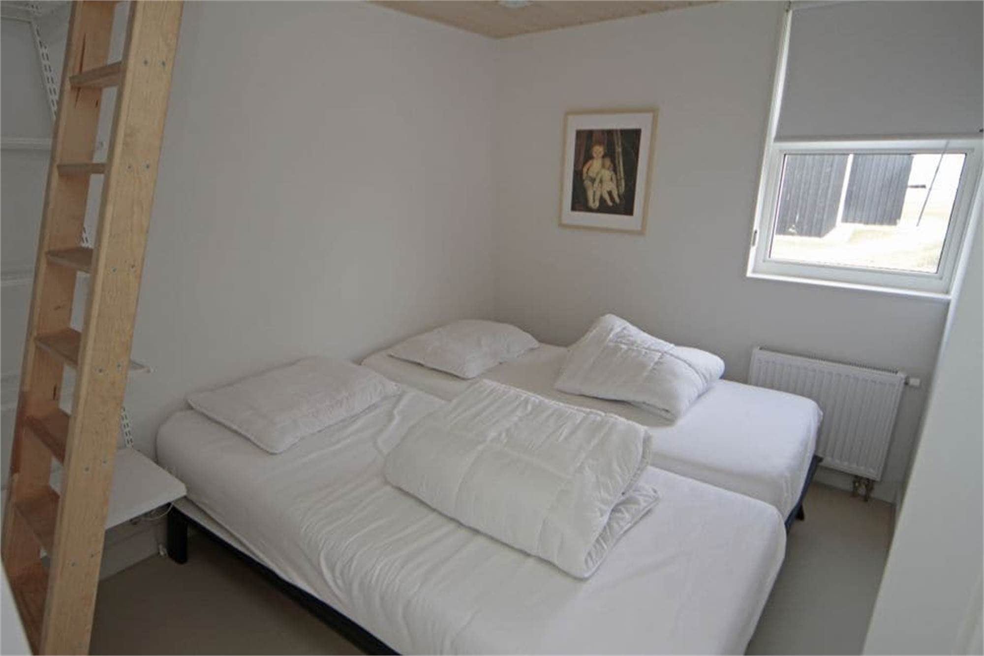 Einteilung: Wohnzimmer mit Sitz- und Essecke. Offene Küche mit Kombi-Mikrowelle und Geschirrspüler. Zwei Schlafzimmer, davon eins mit zwei Einzel-Boxspringbetten und eins mit Etagenbettt. Badezimmer mit Dusche, Toilette und Waschtisch.