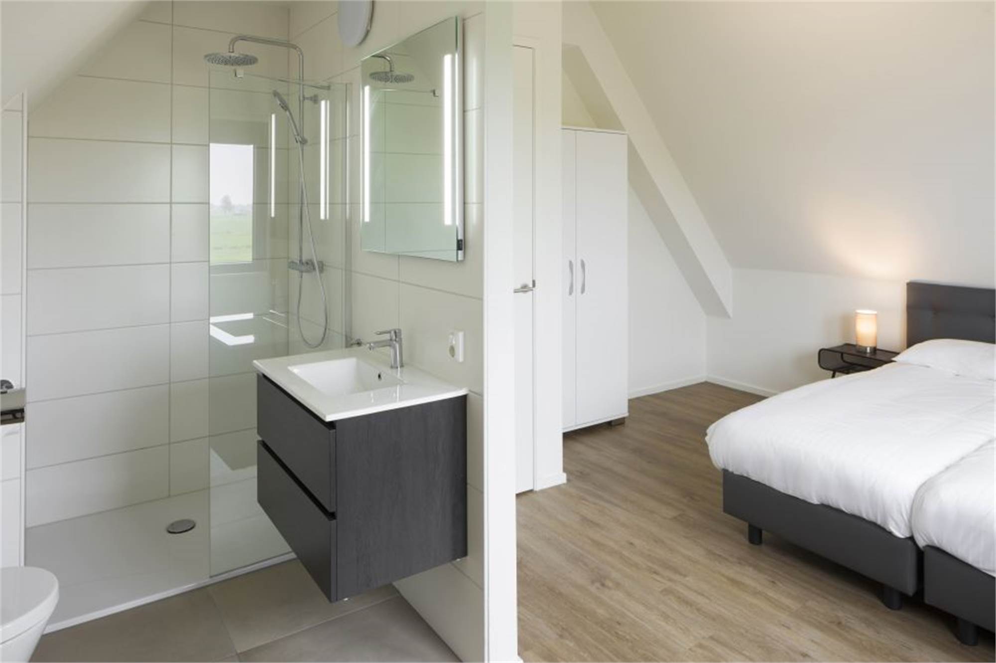 Diese neue, freistehende Villa eignet sich für 6 Personen. Im Erdgeschoss finden Sie ein gemütliches Wohnzimmer mit Smart-TV und eine Küche mit u. a. Kombi-Mikrowelle, Kaffeemaschine und Geschirrspüler. Außerdem gibt es ein Schlafzimmer mit 2 Einzelbetten und eigenem Badezimmer mit begehbarer Dusche. Im Obergeschoss befinden sich 2 weitere Schlafzimmer mit je 2 Einzelbetten sowie 2 Badezimmer mit begehbarer Dusche und 2 separate Toiletten. Im Außenbereich finden Sie einen schönen Garten mit möblierter Terrasse. Die Villa liegt direkt an einem (Angel-)Gewässer und verfügt über einen eigenen Steg und Bootshaus. Von April bis einschl. Oktober steht Ihnen ein kleines Boot zur Verfügung. Es gibt twei Parkmöglichkeiten für ein Auto und die Nutzung von WiFi ist gratis.
