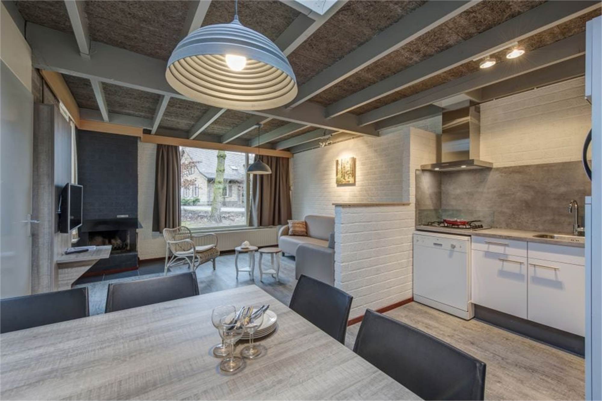 Dieser ebenerdige Bungalow wurde komplett modernisiert und eignet sich für 4 Personen. Es gibt ein Wohnzimmer mit Smart-TV und offenem Kamin. Die Küche ist mit Geschirrspüler, Kombi-Mikrowelle, Kühl-/Gefrierkombination und Kaffeemaschine ausgestattet. Außerdem finden Sie 2 Schlafzimmer mit je 2 Einzelbetten und in einem der Schlafzimmer ein zusätzliches TV-Gerät. Im Badezimmer befindet sich eine Regendusche und darüber hinaus gibt es eine Infrarotsauna und eine separate Toilette. Im Außenbereich finden Sie eine möblierte Terrasse und die Nutzung von WiFi ist gratis.