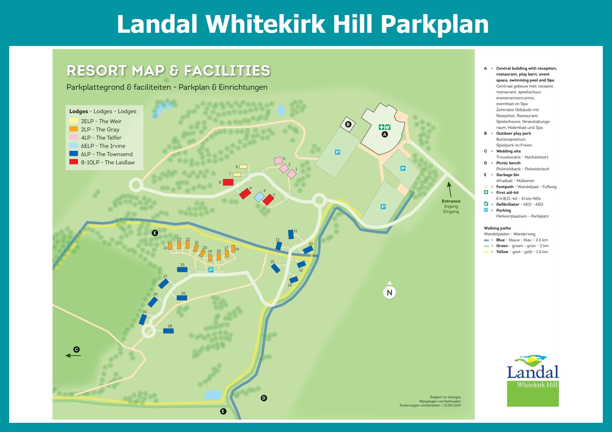 Aktueller und übersichtlicher Parkplan von Landal Whitekirk Hill mit alle Unterkünfte und Einrichtungen, auch als PDF herunterladbar.