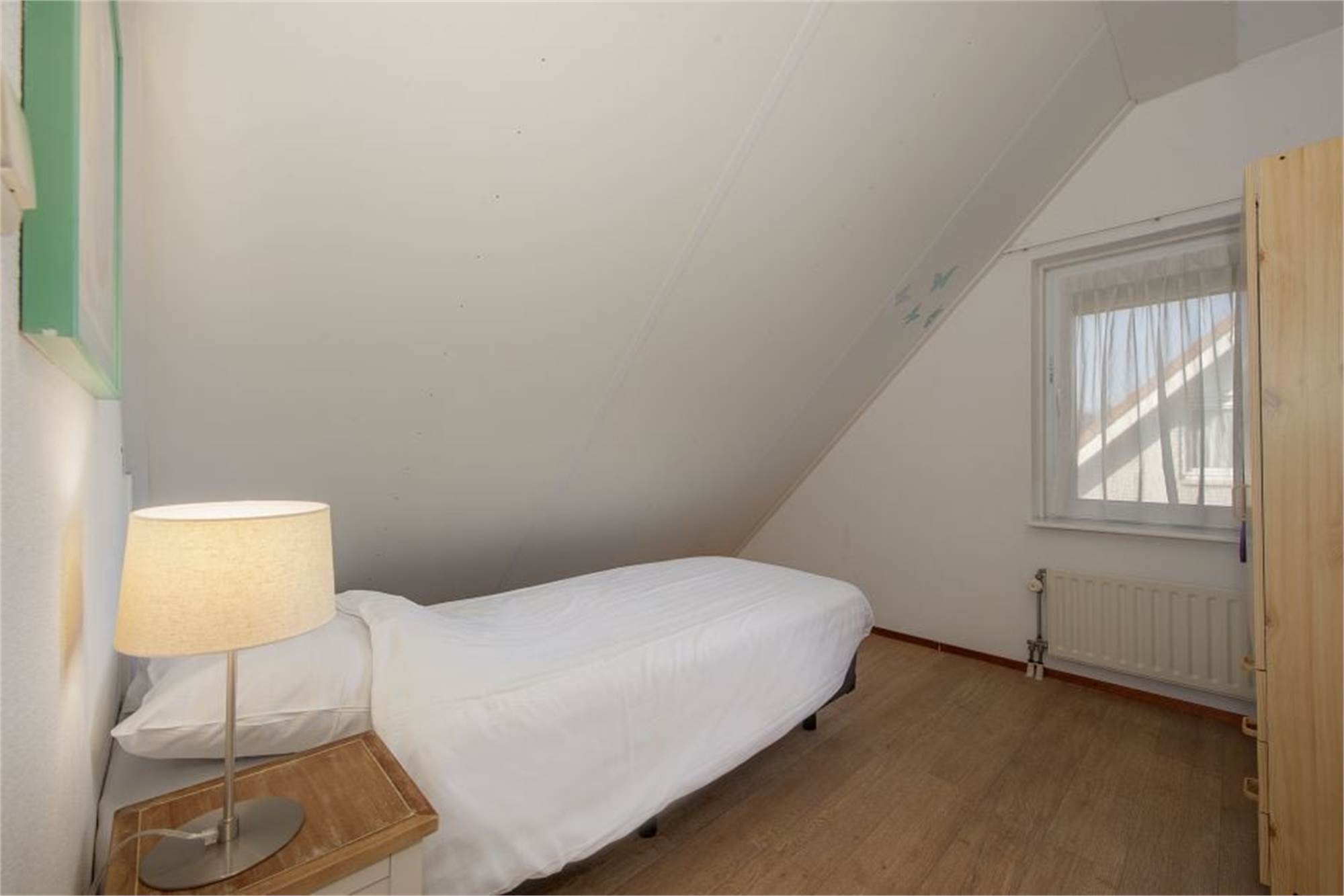Dieser freistehende Bungalow ist geeignet für 6 Personen. Unten ist ein Badezimmer mit Duschkabine und Dusche in der Badewanne. Im Eingangsbereich ist eine separate Toilette. Oben finden Sie 4 Schlafzimmer, alle mit Einzelbetten. Im Außenbereich haben Sie eine Terrasse mit Sonnenliegen und Sie können gratis der WiFi nutzen.