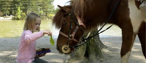 Les enfants découvrent comment prendre soin d'un poney. Ils apprennent à le nourrir, à le brosser, etc. Quel plaisir de lui brosser la crinière et de lui mettre des nœuds et des élastiques colorés ! Ensuite, ils peuvent seller les poneys et partir en balade dans le domaine.