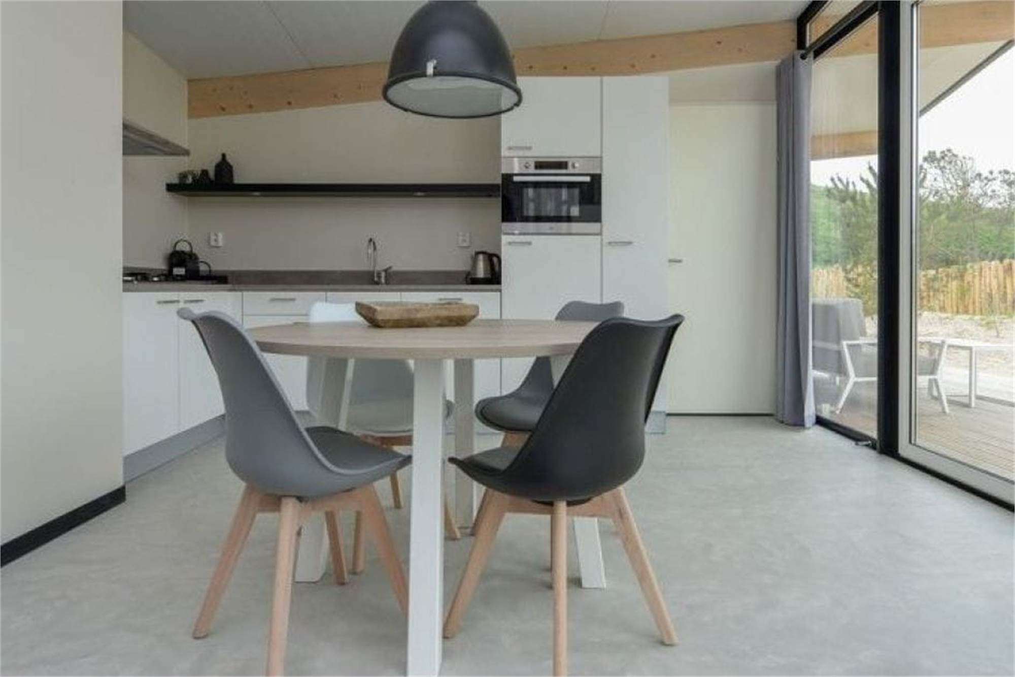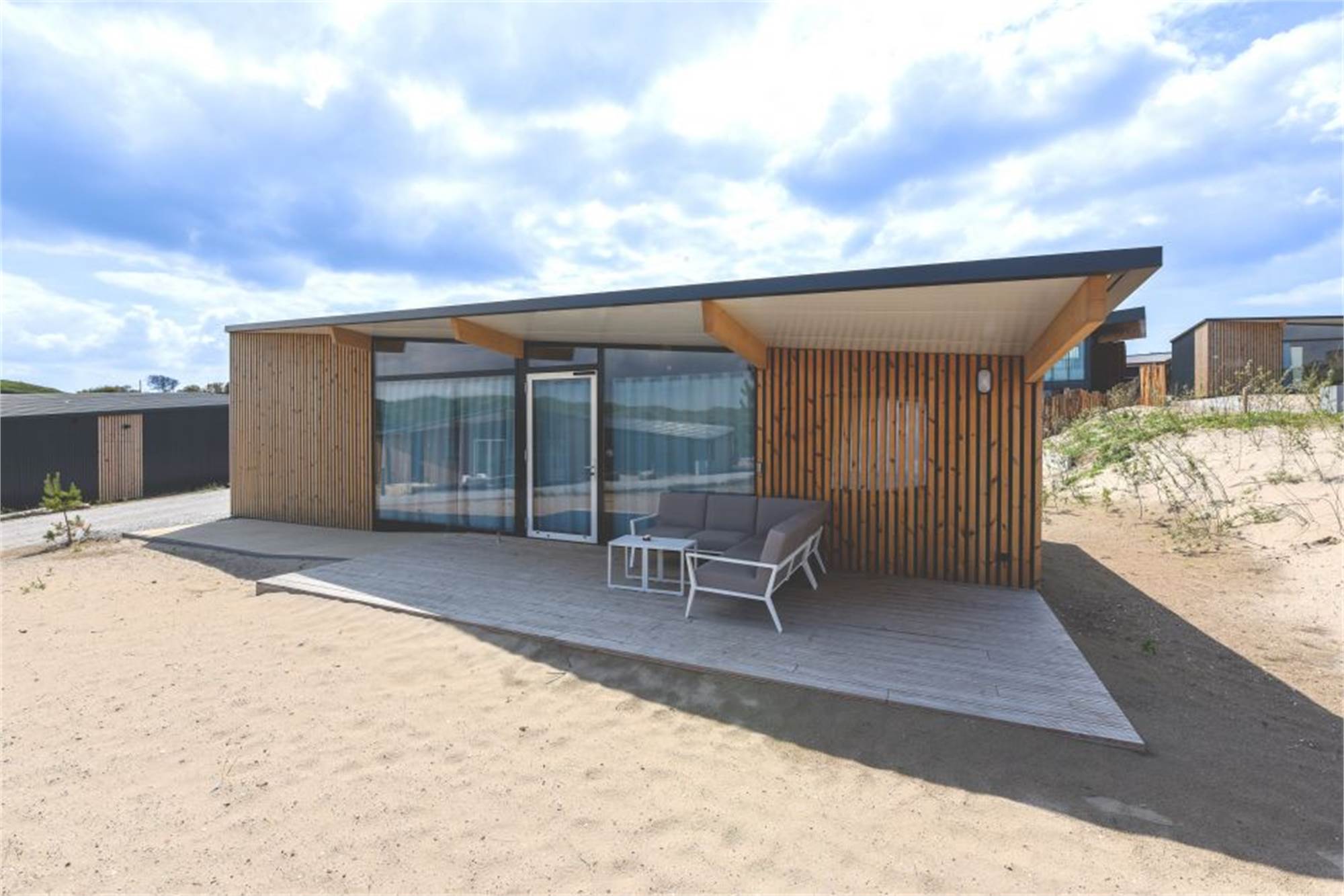 Ce lodge indépendant peut accueillir 4 personnes. La salle de séjour a un coin salon, une smart-TV et un coin repas. La cuisine est équipée d'un lave-vaisselle, d'un réfrigérateur avec compartiment congélateur, d'un micro-ondes, d'une machine à café et d'une bouilloire. Il y a 2 chambres à coucher, chacune avec 2 lits simples. Les deux chambres à coucher disposent d'une salle de bains privative avec douche et toilettes. La chambre à coucher permet d'accueillir un lit d'enfant supplémentaire. Le lodge dispose d'un jardin avec pergola et un ensemble lounge. Tout le lodge est équipé du chauffage au sol et du wifi gratuit.
