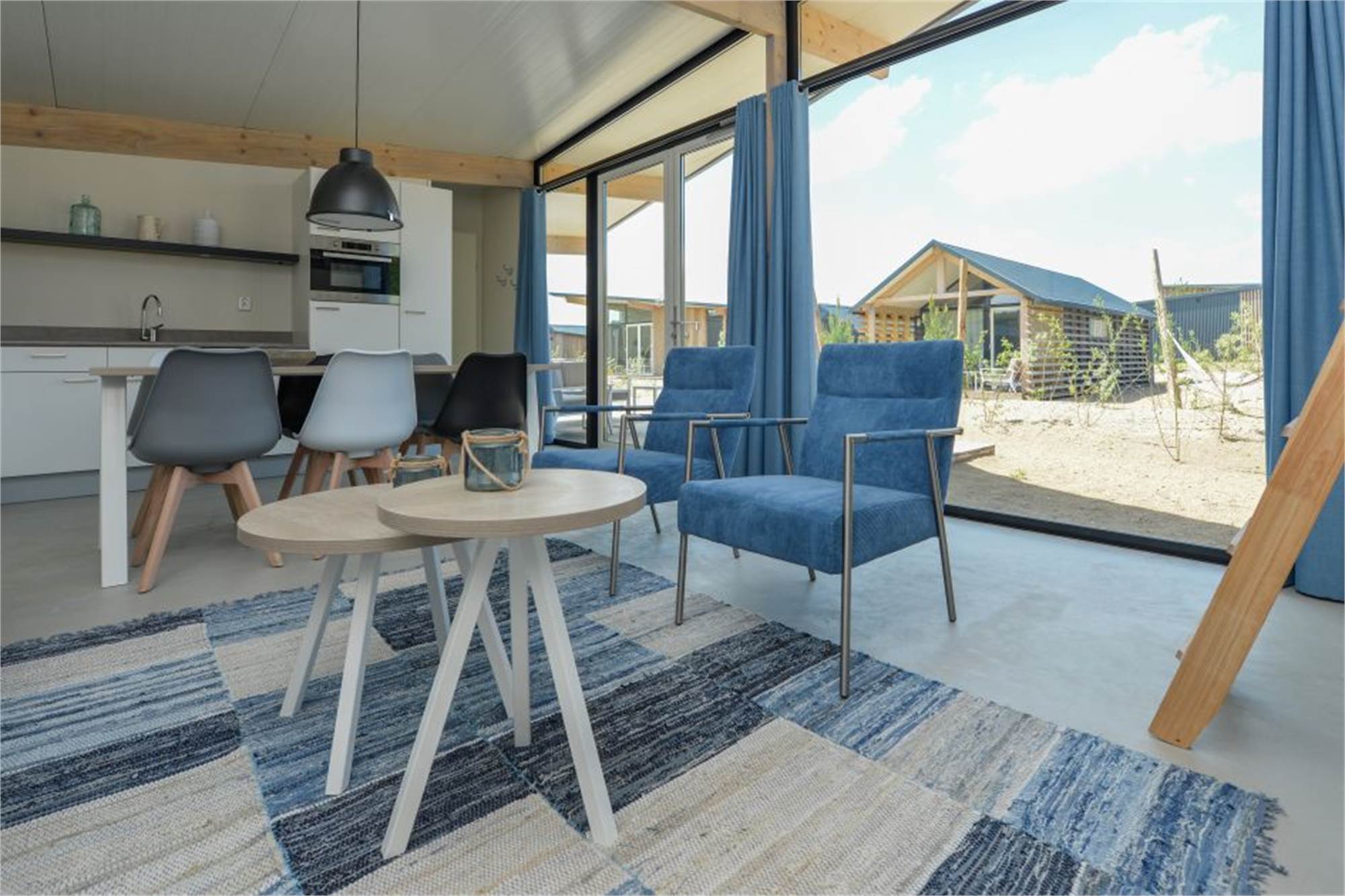 Ce lodge indépendant peut accueillir 4 personnes. La salle de séjour a un coin salon, une smart-TV et un coin repas. La cuisine est équipée d'un réfrigérateur avec compartiment congélateur, d'un micro-ondes, d'une machine à café et d'une bouilloire. Dans la chambre du rez-de-chaussée, il a un 2 lits simples. Par un escalier en bois, vous atteignez la mezzanine avec 2 autres lits simples. La salle de bains se compose de toilettes, d'un lavabo et d'une douche à l'italienne. Le lodge possède un jardin avec une pergola et des meubles de jardin. Tout le lodge est équipé du chauffage au sol et du wifi gratuit.