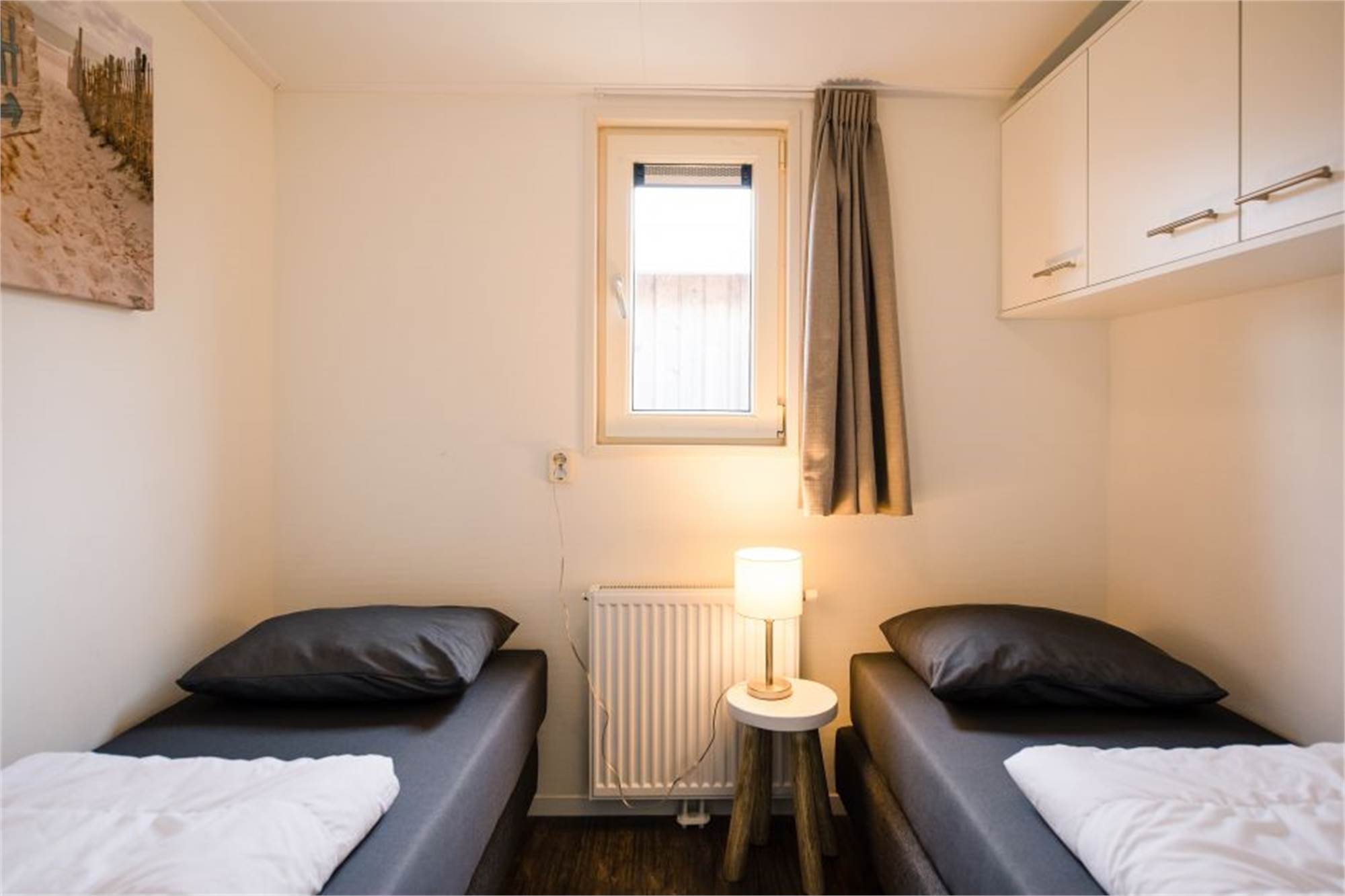 Ce nouveau chalet indépendant est peut accueillir 4 personnes. Le salon dispose d'un coin repas séparé et dans la cuisine, vous trouverez un micro-ondes combiné, un lave-vaisselle et une machine à café. En outre, il y a 2 chambres avec chacune 2 lits simples avec des sommiers à ressorts et une salle de bain avec douche et toilettes. Le chalet est équipé d'une véranda meublée et vous pourrez profiter d’une connexion Wifi gratuite.