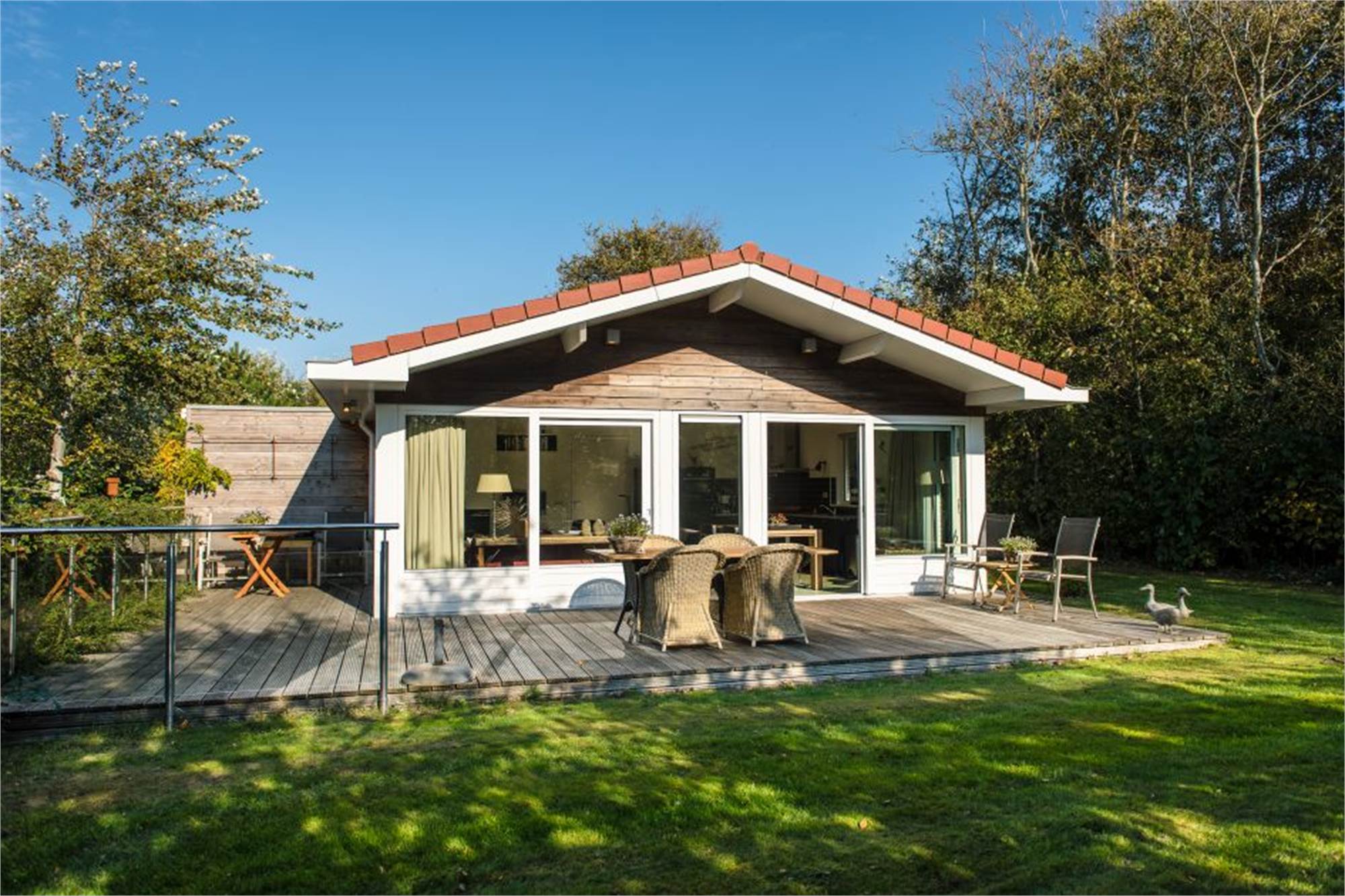 Ce logement spacieux et luxueux se trouve à côté de l'étang de canard dans un cadre magnifique. Ce logement dispose de deux chambres avec télévision à écran LCD, une salle de bains de luxe, des toilettes supplémentaires, un salon charmant au soleil avec télévision à écran LCD et un lecteur DVD et une cuisine entièrement équipée avec ustensiles. La terrasse est équipée d’un mobilier de jardin.
