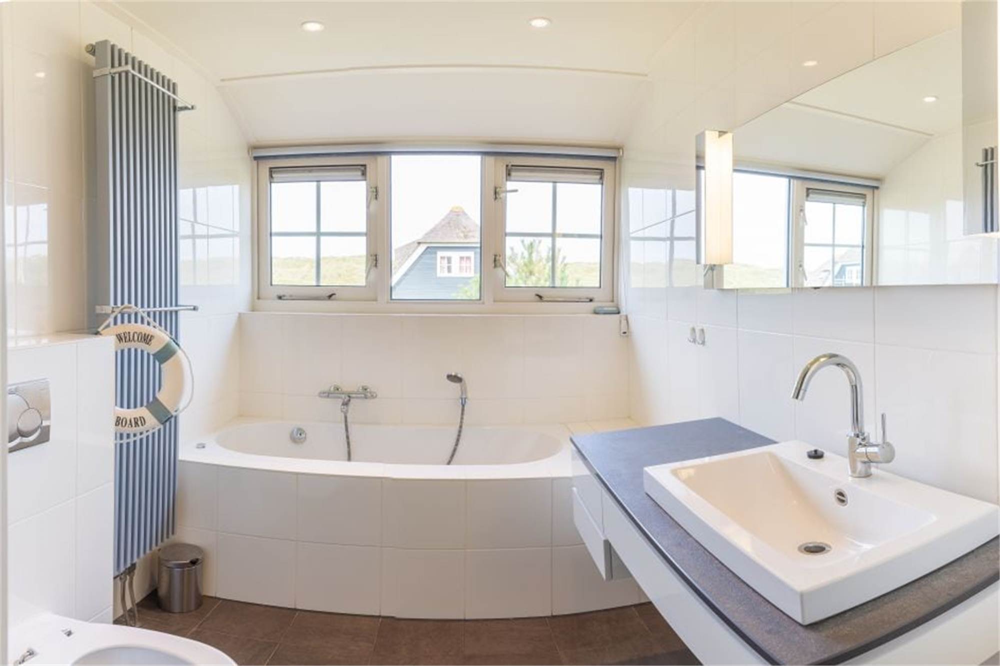 Villa très luxueuse avec toit de chaume. Salon dispose d’une télévision à écran plat et d’un lecteur DVD. La cuisine est luxueusement équipée d’un four micro-ondes combiné et d’un lave-vaisselle. La chambre principale dispose d'un écran plat. La salle de bain au rez-de-chaussée est équipée d'une baignoire. Ce bungalow dispose également d'un sauna, lave-linge et sèche-linge et Internet sans fil. Pour les enfants, ce bungalow dispose d’un lit pour enfant avec matelas, d’une chaise haute Tripp Trapp et de barrières d’escaliers en haut et en bas. Pour les enfants plus âgés il y a une console Wii. La terrasse dispose d'une fenêtre de terrasse de luxe et est meublée avec un salon et des meubles de jardin luxueux.
