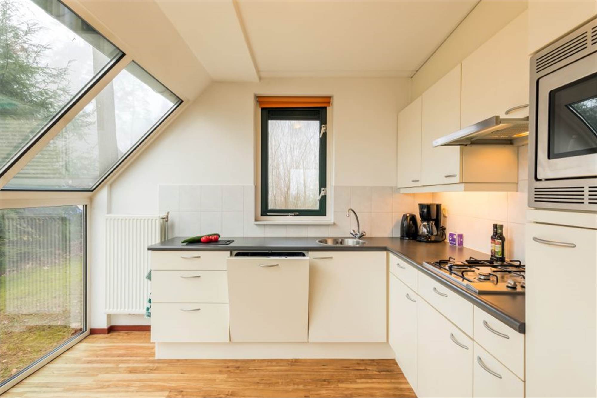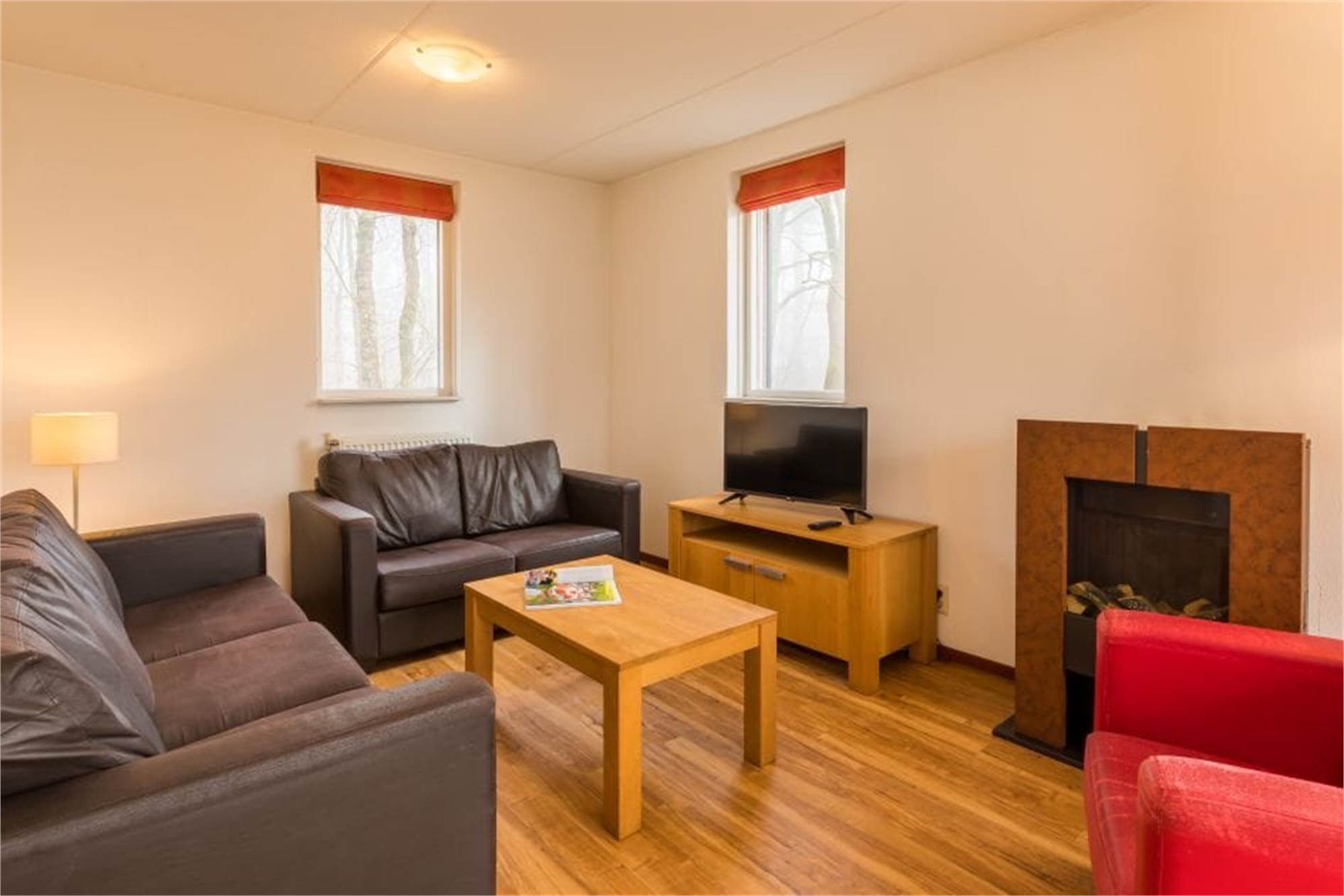 Ce bungalow indépendant peut accueillir 4 personnes. La salle de séjour dispose d'une cheminée décorative et d'une serre et dans la cuisine ouverte, vous trouverez un micro-ondes combiné et un lave-vaisselle. Ensuite, il y a 2 chambres à coucher, chacune avec 2 lits simples. La salle de bain dispose d'une baignoire et de toilettes ou d'une douche et de toilettes séparées. Le bungalow est équipé d'une terrasse meublée et vous pourrez profiter gratuitement de la connexion Wi-Fi.