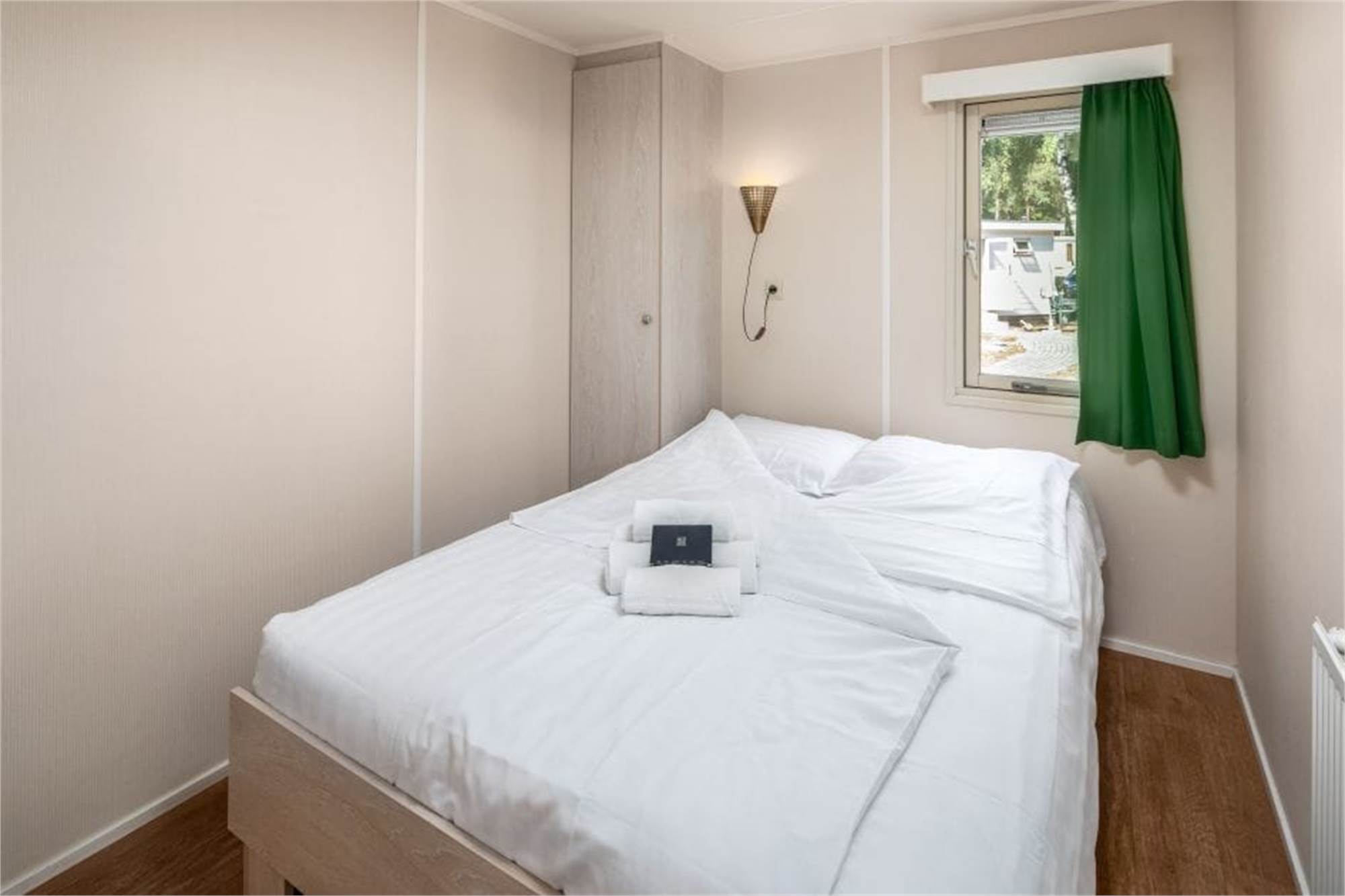 Ce chalet indépendant peut accueillir 4 personnes. Il y a une salle de séjour avec un coin salle à manger et une cuisine ouverte. Il y a 2 chambres et la salle de bains est pourvue d’une douche, d’un lavabo et de toilettes. Chaque chalet dispose d'une véranda en bois ou d'une terrasse en pierre avec mobilier de jardin.