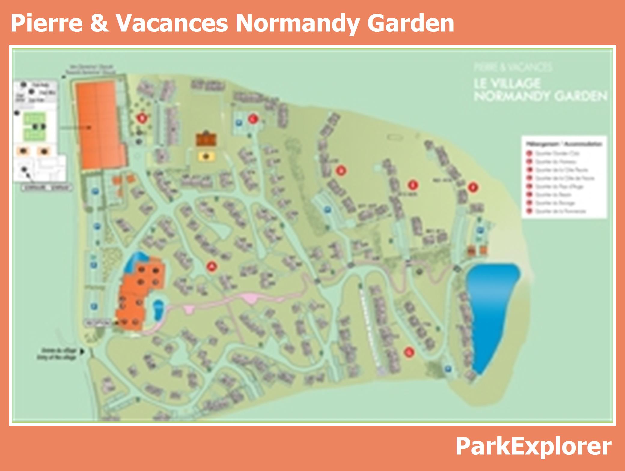 Le plan actuel du Pierre & Vacances Normandy Garden avec tous les hébergements et installations, est aussi disponible en pdf.