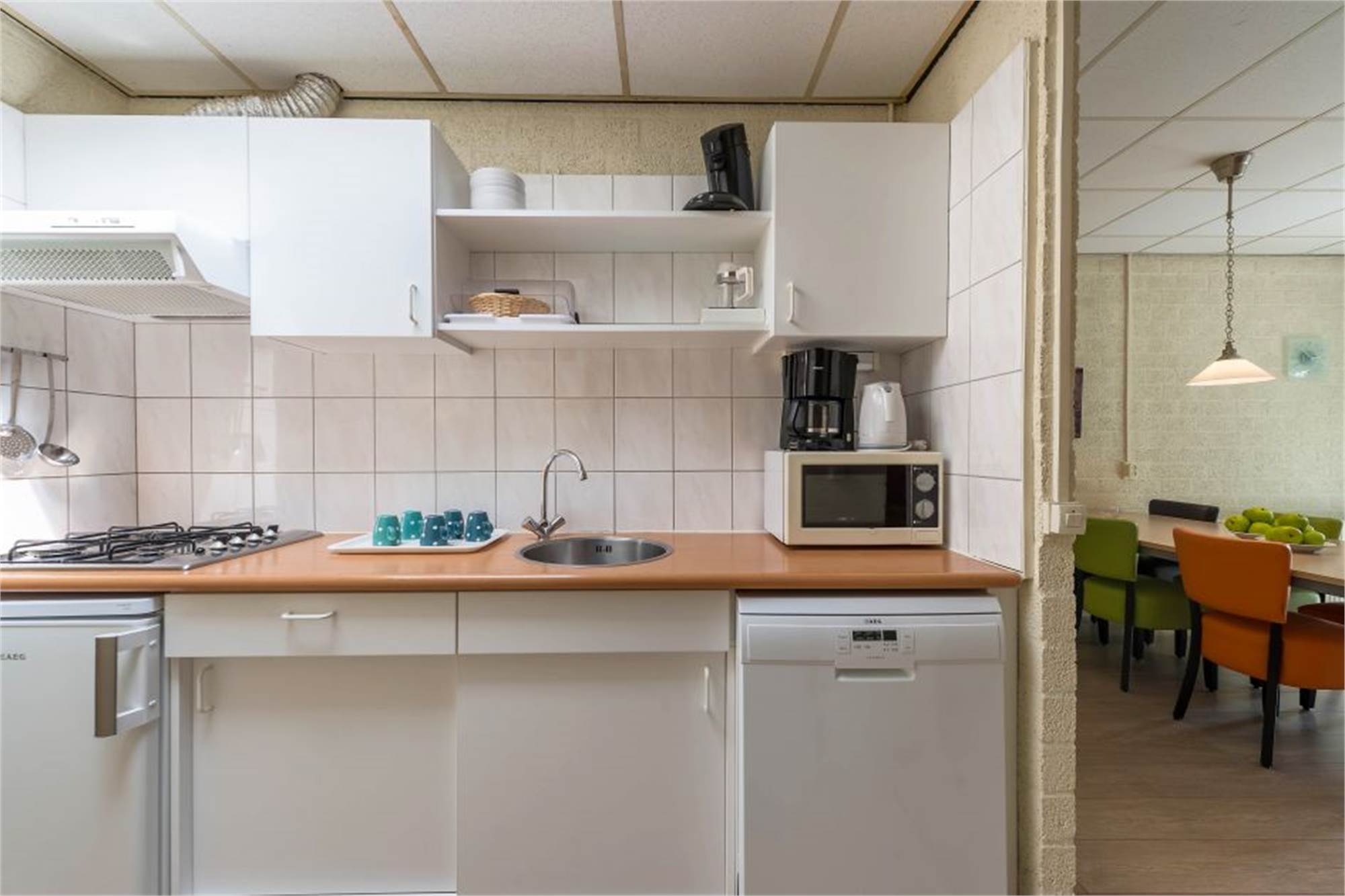 Aménagement : Séjour avec télévision à écran plat, lecteur DVD et chaine hi-fi. Cuisine ouverte avec lave-vaisselle, réfrigérateur, micro-ondes et d'une machine à café à pads. Trois chambres, dont deux avec lits simples avec sommiers à ressorts et une avec des lits superposés. Salle de bains avec douche et toilettes. La salle de bains du type Roos 6 Mindervalide est adaptée aux personnes handicapées, elle est équipée de toilettes surélevées, d'un lavabo abaissé et de barres d'appui à côté des toilettes et dans la douche.