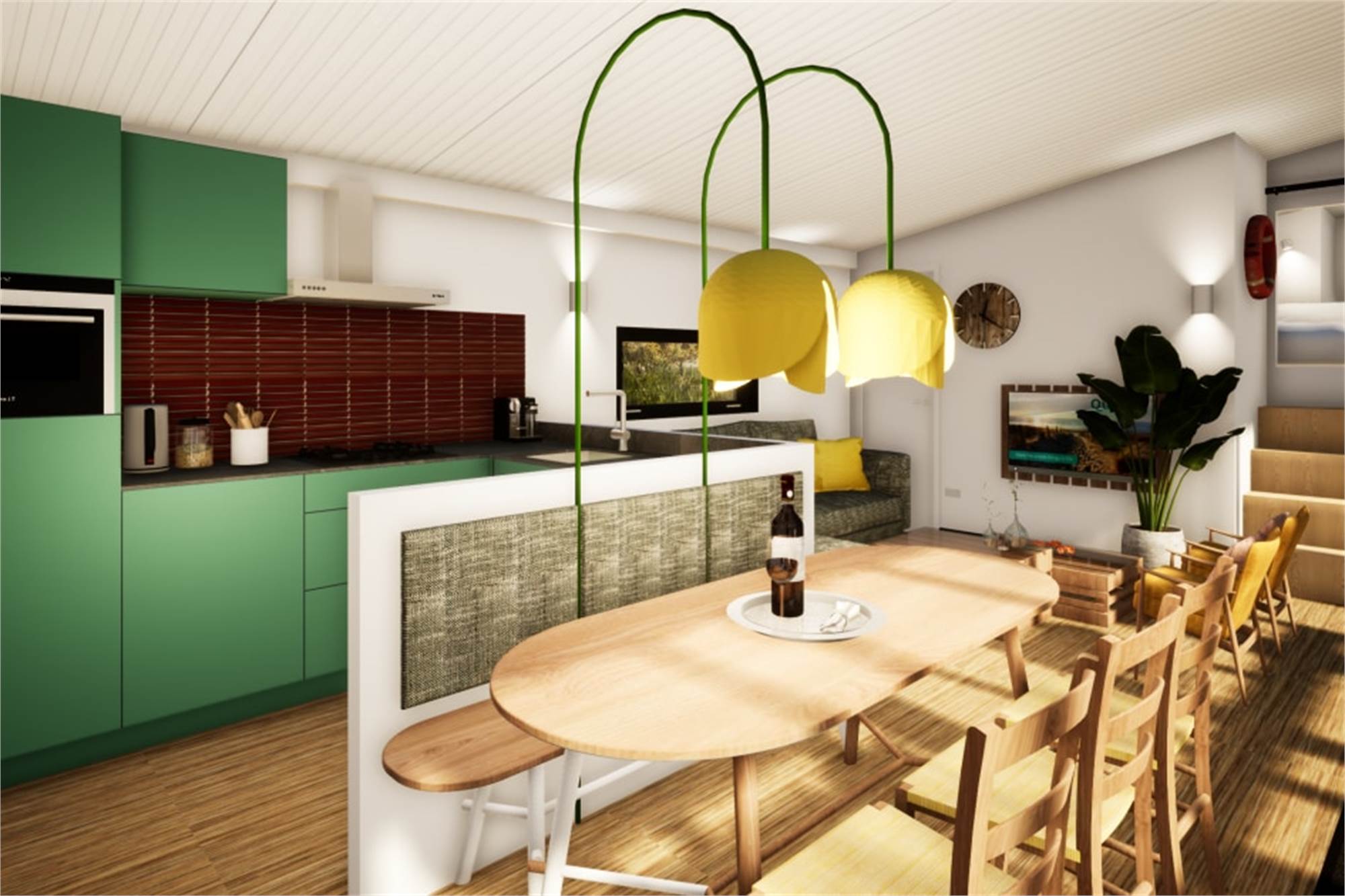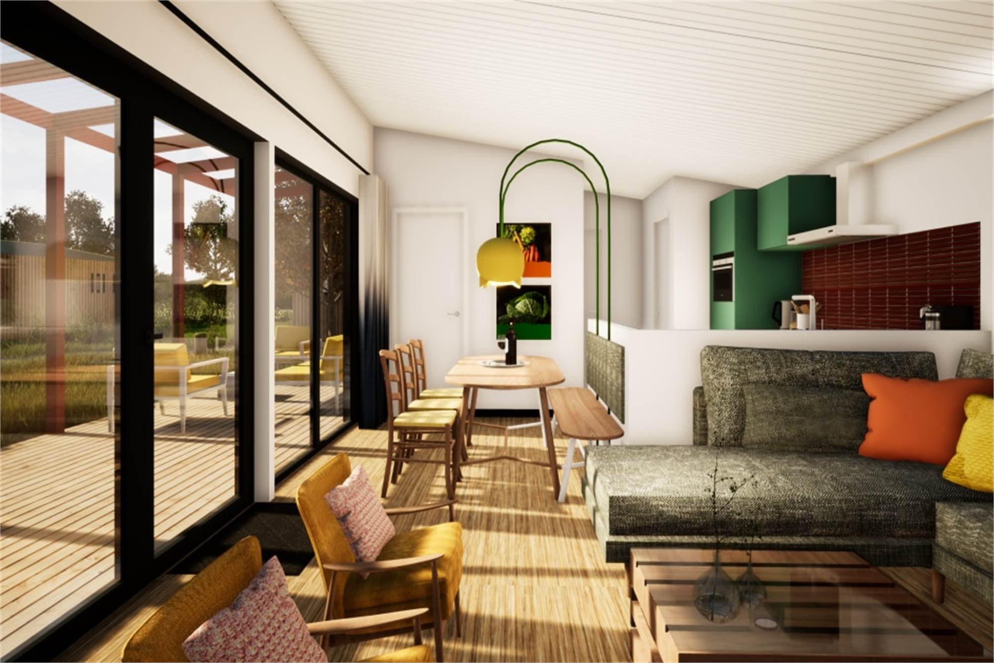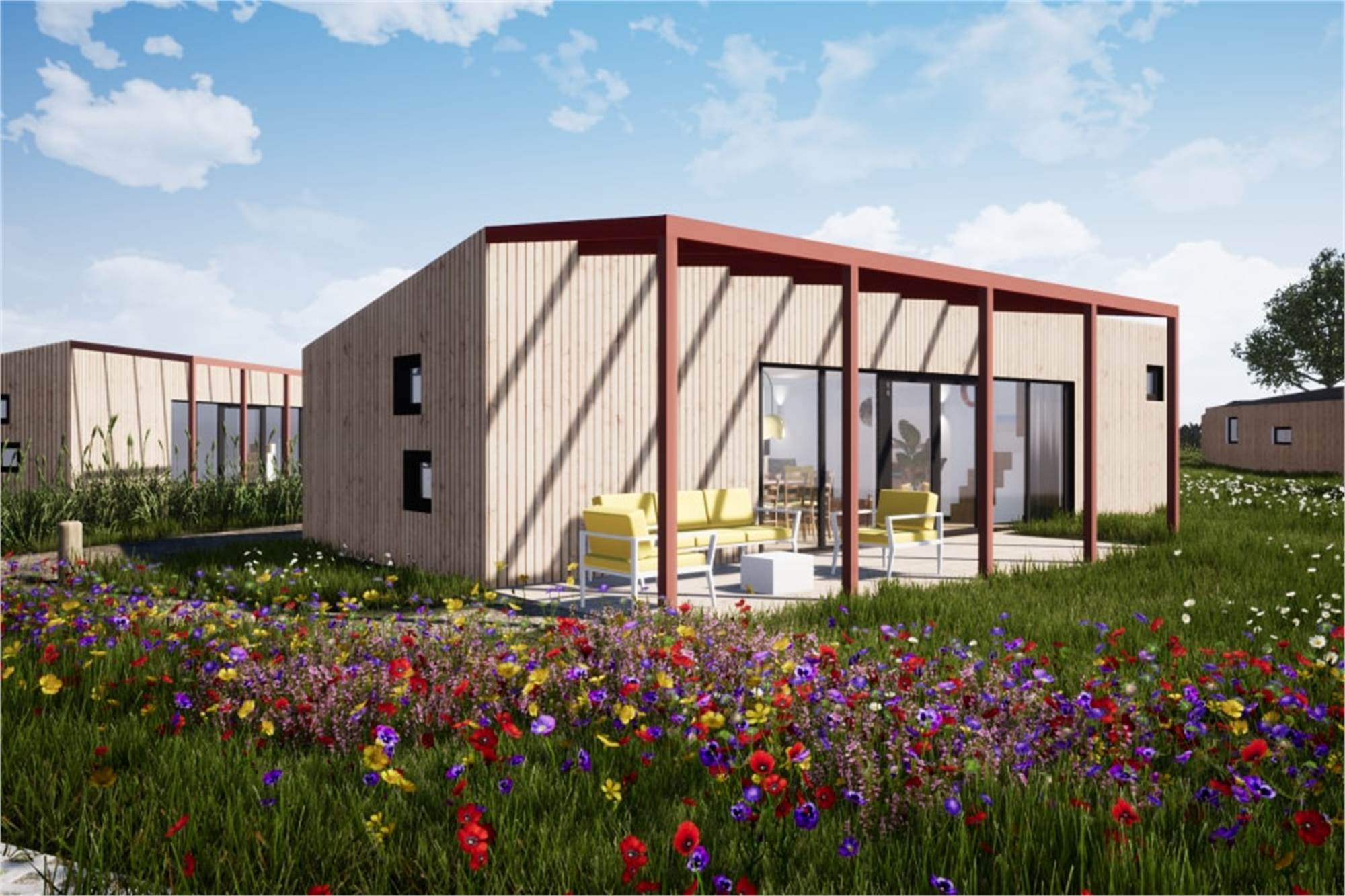Cet lodge indépendant convient à 4 adultes et 2 enfants. La salle de séjour a un coin salon, une smart-TV et un coin repas. La cuisine est équipée d'un lave-vaisselle, d'un réfrigérateur avec compartiment congélateur, d'un micro-ondes, d'une machine à café et d'une bouilloire. Il y a 2 chambres à coucher, chacune avec 2 lits simples. On accède à la mezzanine par l'escalier en bois. Deux enfants peuvent y dormir. En raison de l'escalier raide, la mezzanine est moins adaptée aux petits enfants et aux personnes âgées. Il y a 1 salle de bain avec lavabo et douche. Il y a également des toilettes séparées. Le lodge dispose d'un jardin avec pergola et un ensemble lounge. Tout le lodge est équipé du chauffage au sol et du wifi gratuit.