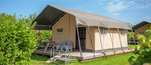 Grâce aux tentes de safari, vous pourrez vivre une expérience de camping de luxe. Les tentes sont adaptées pour 4 personnes. Le salon dispose d'une télévision et le chauffage. La cuisine est équipée d'un réfrigérateur, d’une bouilloire et d’une machine à café dosettes . La tente dispose d'1 lit double et 2 lits simples. La tente safari dispose également d’une véranda avec table de pique-nique. Les animaux de compagnie ne sont pas admis. Il n'y a pas d'installations sanitaires dans la tentes de safari. Vous pouvez cependant utiliser le bloc sanitaire le plus proche. Vous pouves utiliser la connexion Wifi gratuitement.