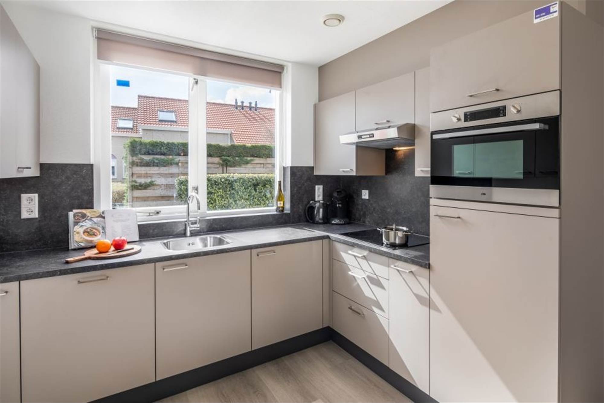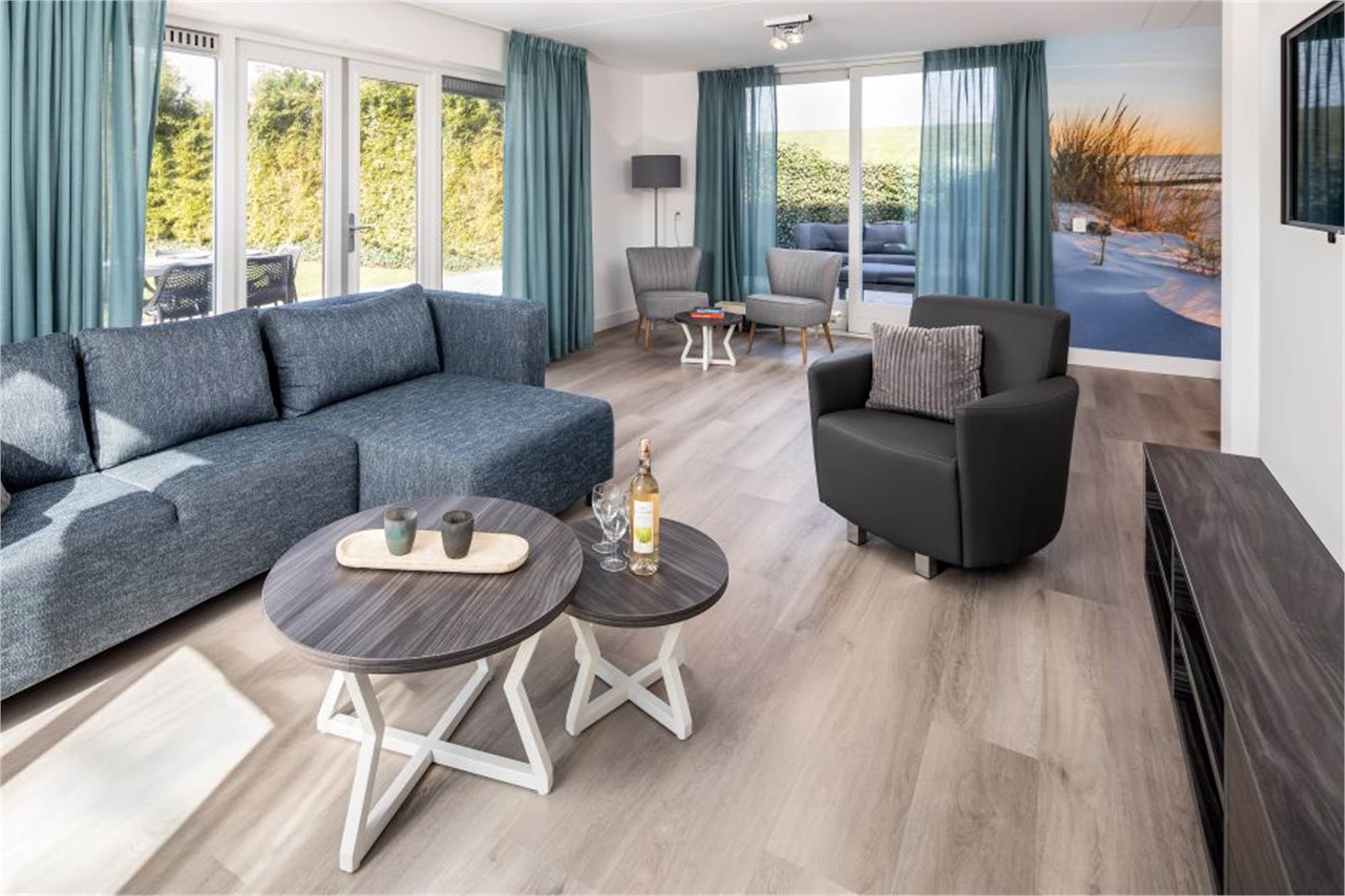Ce bungalow indépendant peut accueillir 6 personnes. La salle de séjour spacieuse dispose d'un coin salon équipé d'une télévision connectée. Dans la cuisine ouverte, vous trouverez une machine à café à dosettes et un four micro-ondes combiné. L'une des chambres se trouve au rez-de-chaussée et les 2 autres sont à l'étage. Une de ces chambres dispose d'un balcon privé et toutes les chambres sont meublées de lits simples avec sommiers à ressorts. Dans la salle de bains au premier étage, vous trouverez une baignoire, une douche à l'italienne et des toilettes séparées. Le jardin est clôturé et dispose d'une terrasse avec ameublement lounge. Le bungalow est également équipé d'un sauna infrarouge.