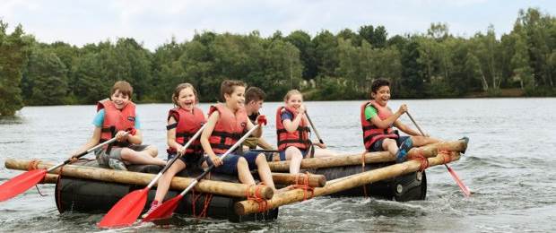 C'est cool de construire une hutte dans les bois ou un radeau au bord du lac avec les autres enfants ! Qui a un bon plan ? Qui peut montrer aux autres comment faire des nœuds solides ? Collaborer, c'est très important !