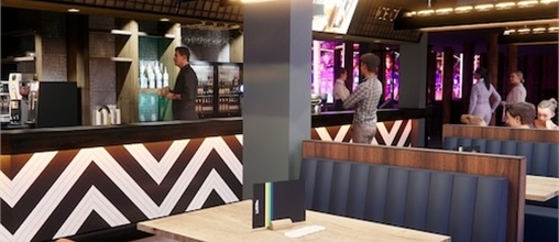 L'endroit idéal pour une pause ! Savourez un délicieux hot-dog, d'un sandwich fraîchement préparé ou d'un savoureux milkshake et regardez vos matchs de sport préférés !