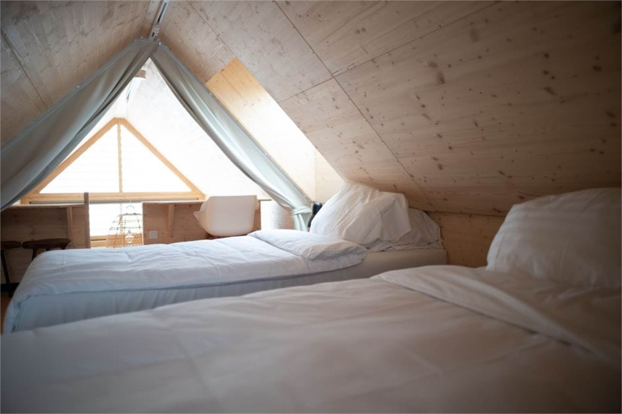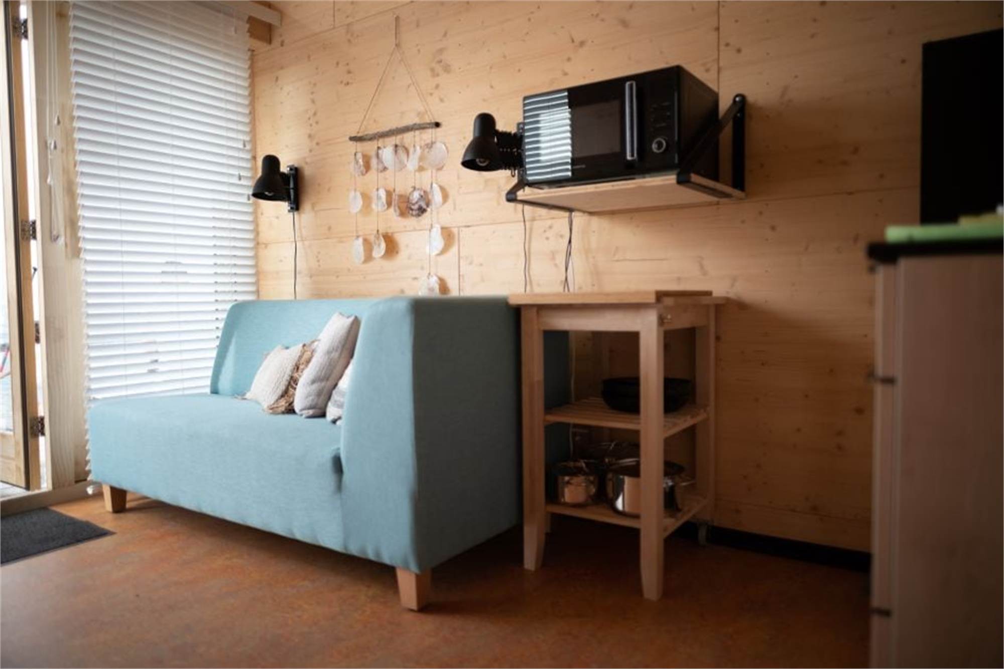 Ce lodge indépendant peut accueillir 4 personnes. La salle de séjour a un coin salon et un coin repas. La cuisine est équipée d'un réfrigérateur avec congélateur, d'un micro-ondes combiné, d'une machine à café dosettes, d'une bouilloire et d'une plaque de cuisson 2 feux. Par un escalier en bois, vous atteignez la mezzanine avec 2 lits simples. Vous venez à trois ou quatre personnes ? Utilisez le lit pliant. Veuillez noter qu'il n'y aura alors plus de place pour un lit bébé. La chambre au rez-de-chaussée dispose d'une smart-TV. La salle de bains est équipée d'un lavabo et d'une douche. Il y a également des toilettes séparées. Le lodge possède un jardin avec des meubles de jardin, un hamac et une vue sur l'eau. Le wifi est à disposition gratuitement.