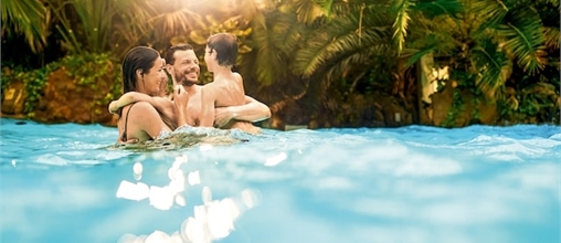Dans la piscine lagon située à côté de la piscine à vagues, vous pouvez vous détendre parmi les palmiers et les rochers. Un vrai paradis subtropical !