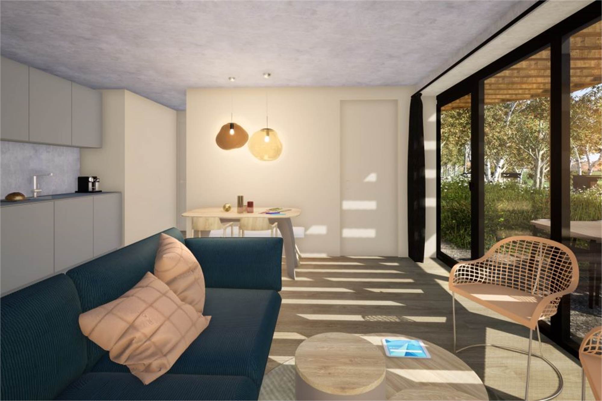 Ce cottage mitoyen de plain pied convient à 4 adultes et un bébé. Le chalet comporte une salle de séjour, un coin salon et une télévision. La cuisine ouverte est notamment équipée d'un réfrigérateur-congélateur, d'un lave-vaisselle, d'un micro-ondes combiné, d'une machine à café et d'une bouilloire électrique. Il y a 2 chambres à coucher avec chacune deux sommiers simples (extra long : 210cm). Il y a une salle de bains avec douche à l'italienne à effet de pluie. Il y a également des toilettes séparées. Le jardin comporte une terrasse partiellement couverte avec un ensemble lounge. La voiture peut être garée sur le parking central. Le wifi est à disposition gratuitement.