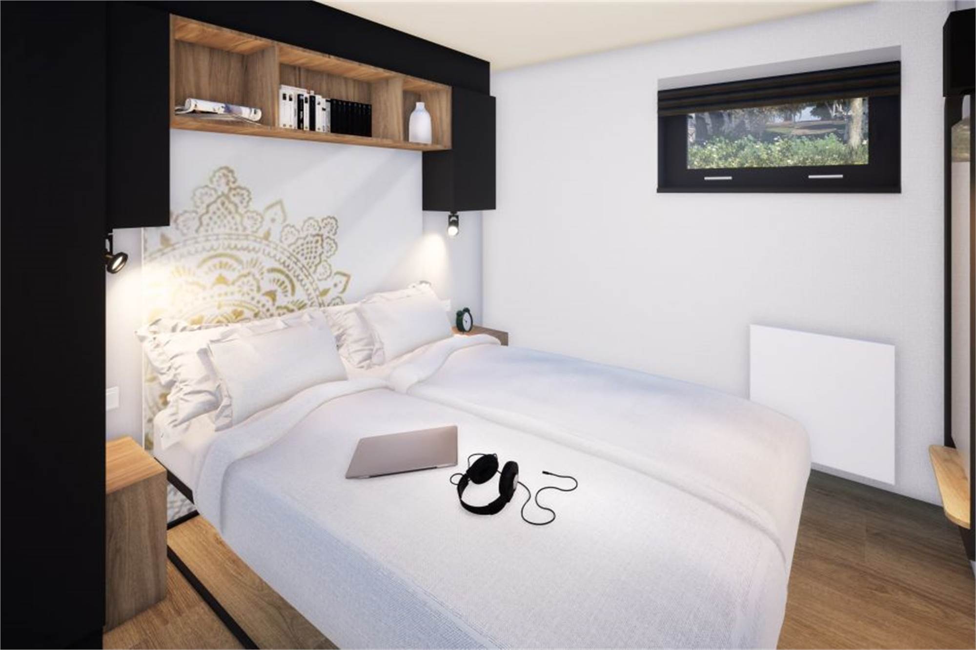 Ce chalet indépendant de plain-pied peut accueillir 4 adultes et 1 bébé. Le chalet peut accueillir les handicapés. La salle de séjour compte un coin salon, une télévision et un chauffage au sol. La cuisine ouverte est équipée d'un lave-vaisselle, d'une machine à café à capsules, d'une bouilloire électrique, d'un micro-ondes combiné et d'un réfrigérateur-congélateur. Il y a 2 chambres à coucher, chacune avec 2 lits simples. Les lits sont extra longs, d'une longueur de 210cm. La salle de bain dispose d'une douche à l'italienne à effet pluie, de toilettes et du chauffage au sol. Le chalet dispose d'un jardin avec une terrasse partiellement couverte équipée de meubles de jardin. Vous pouvez vous garer dans le parking central. Le wifi est à disposition gratuitement.