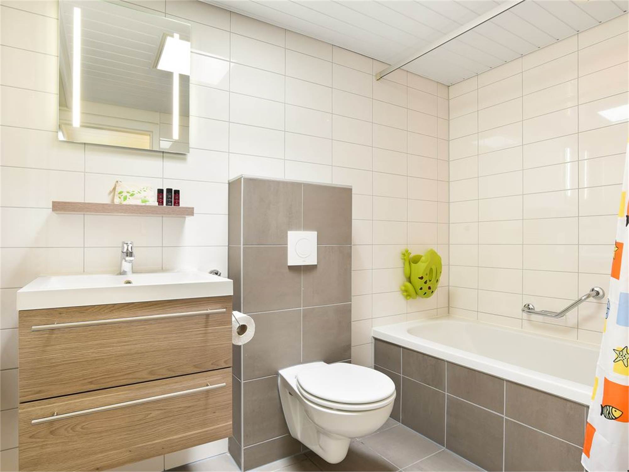 Salle de bains avec baignoire, lavabo et toilette