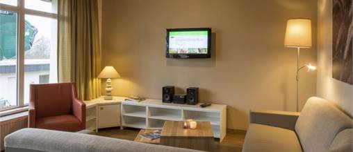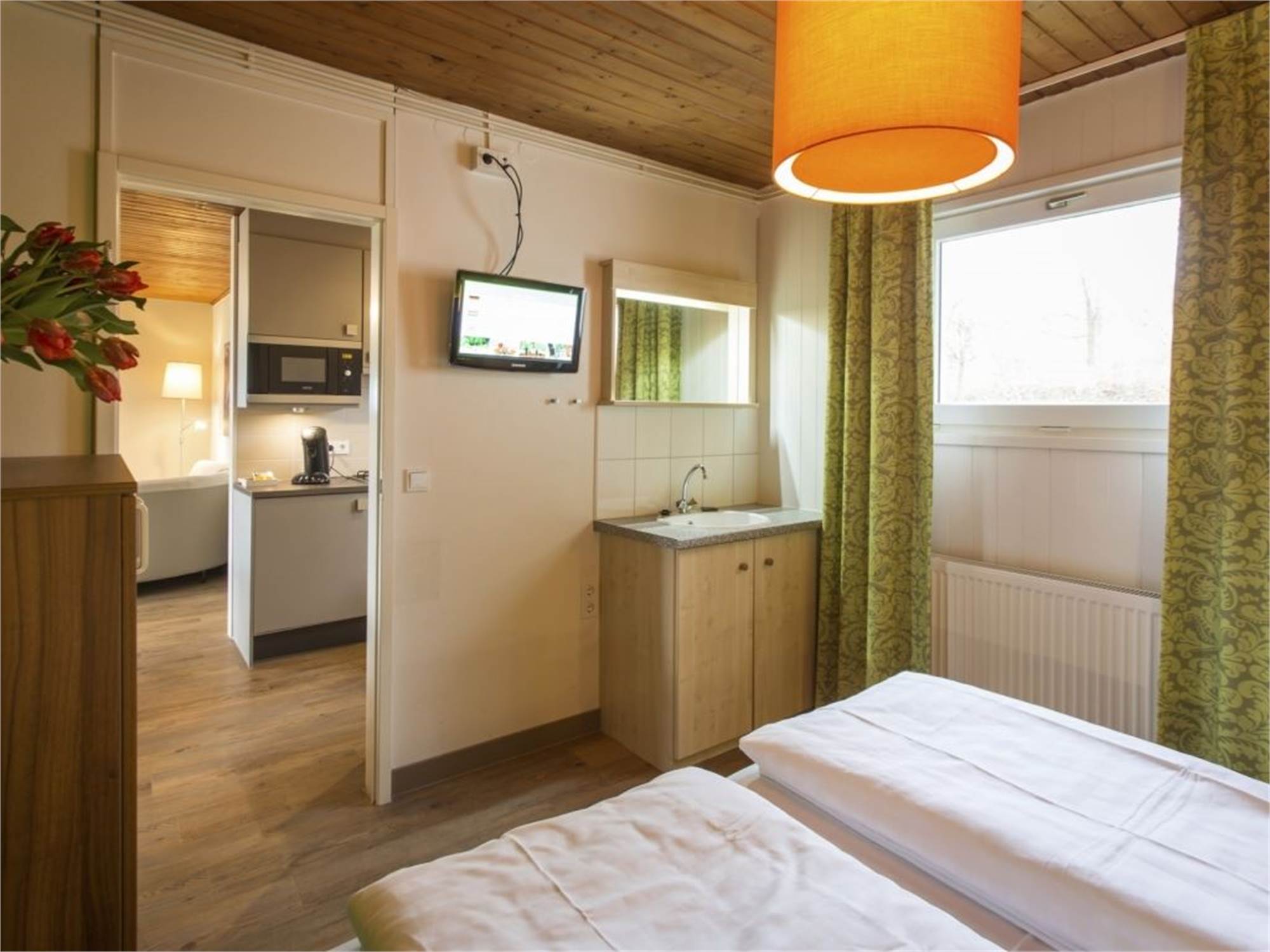 Chambre à coucher avec deux lits 1 personne, couvre matelas Softtopper pour 2 personnes et faltscreen-tv