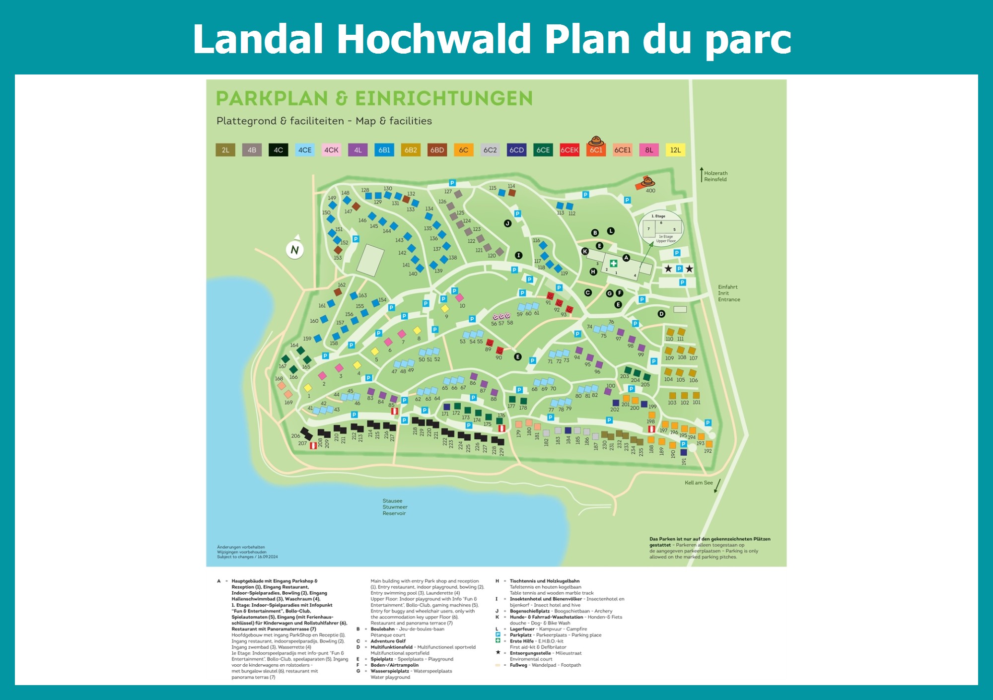 Le plan actuel du Landal Hochwald avec tous les hébergements et installations, est aussi disponible en pdf.