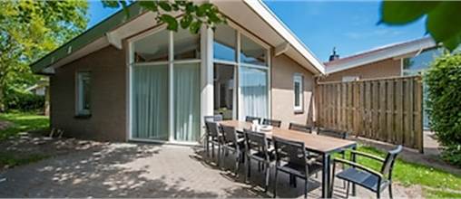 Bungalow pour dix personnes. Ce bungalow dispose d'une salle de séjour conviviale avec coin salon et smart TV. La cuisine ouverte est équipée d’un lave-vaisselle, d’un réfrigérateur avec un compartiment congélateur, d’un micro-ondes combiné et d’une machine à café. Le bungalow dispose de cinq chambres avec chacune deux lits simples avec des sommiers à ressorts. Il y a deux salles de bains avec douche et deux toilettes séparées dans le couloir. A l'extérieur, vous pourrez trouver un jardin avec une terrasse meublée et un débarras. Vous bénéficierez d’une connexion Wifi gratuite dans le bungalow.