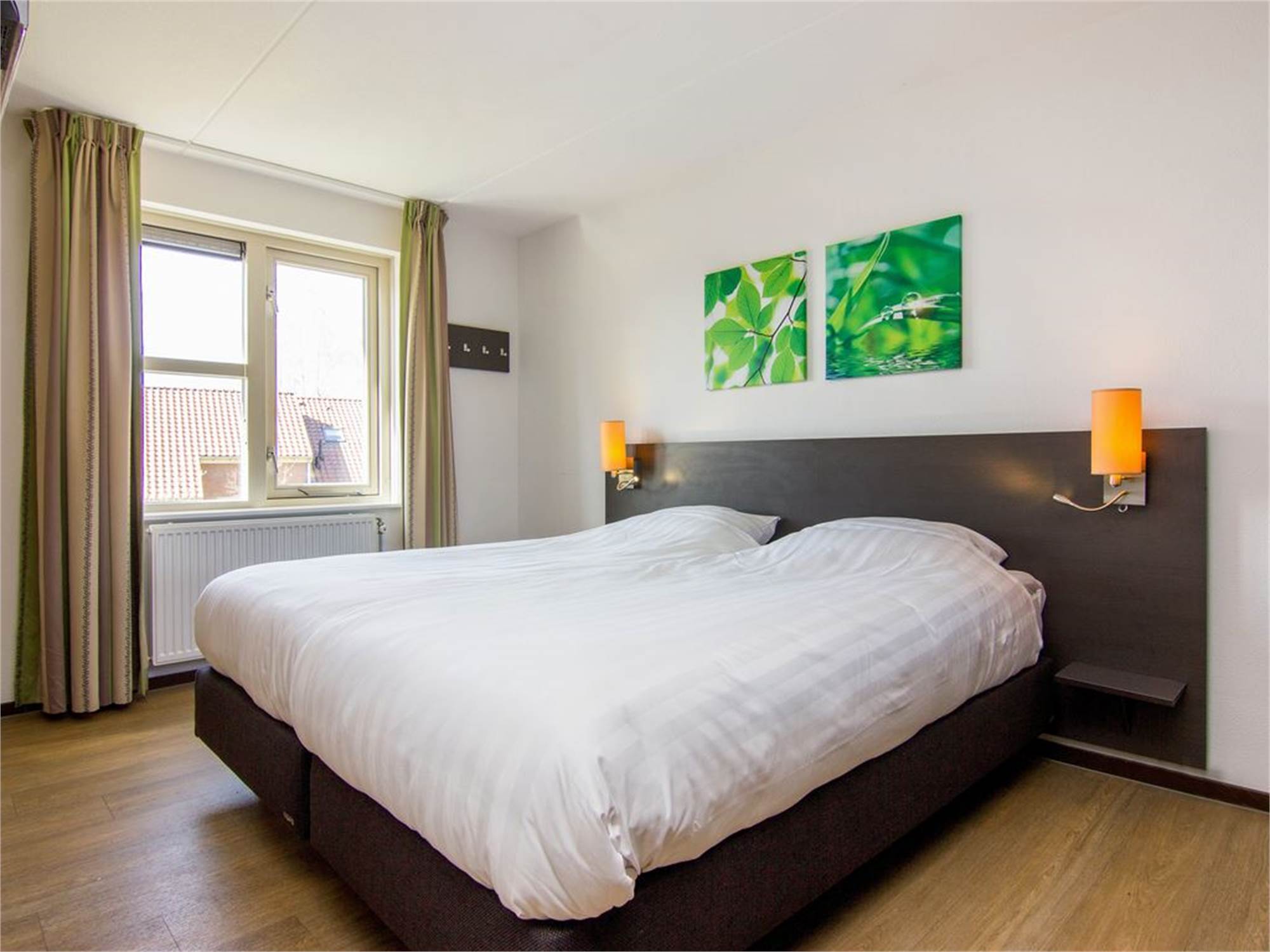 Chambre à coucher avec deux boxsprings Auping 1 personne, couvre-matelas softtoper et tv