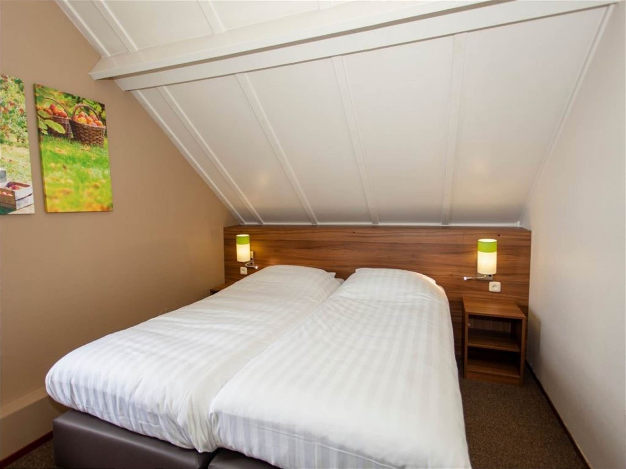 Chambre à coucher avec deux boxsprings Auping 1 personne, couvre-matelas softtoper et tv