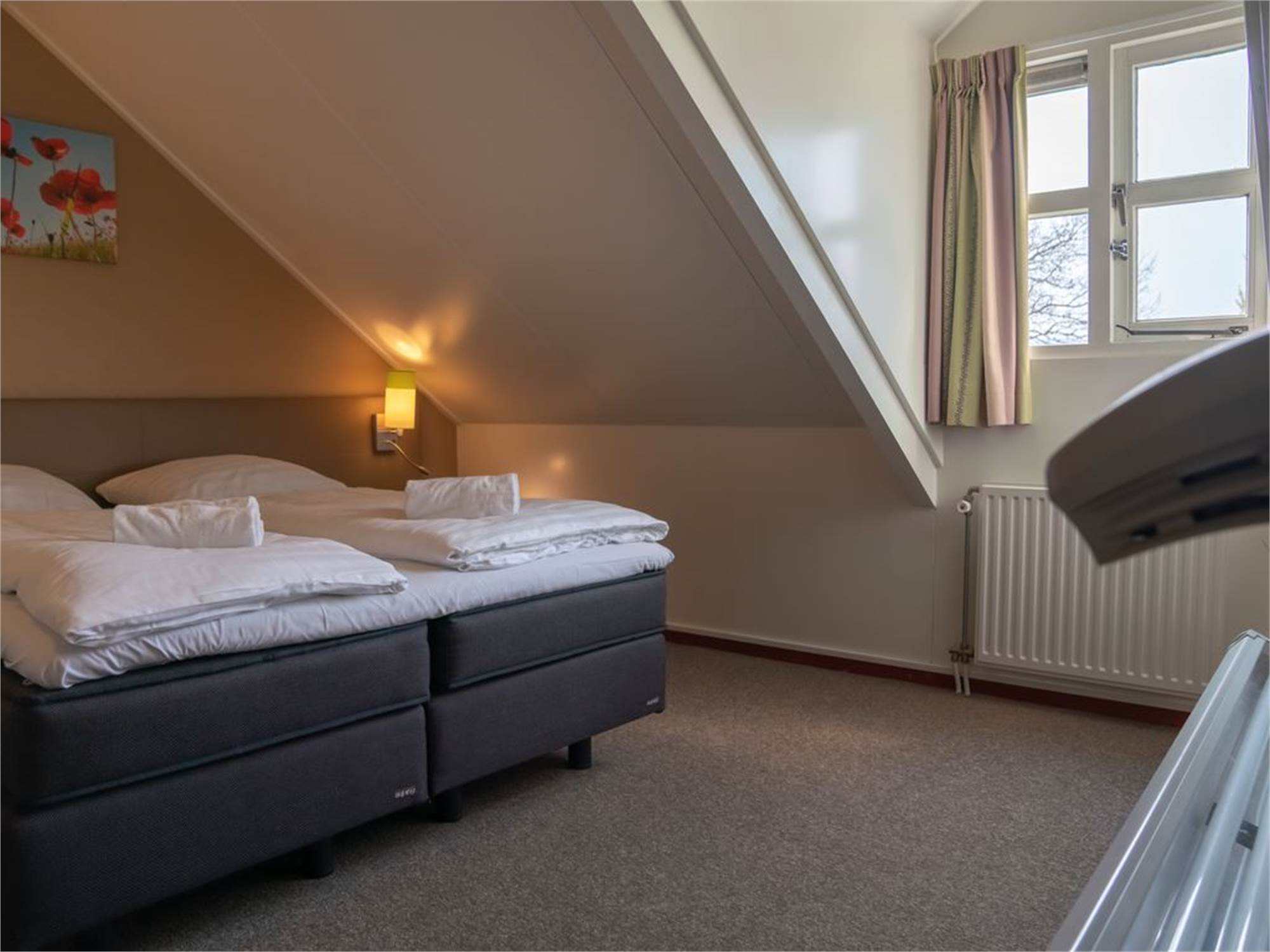 Chambre à coucher avec deux boxsprings Auping 1 personne, couvre-matelas softtoper et tv