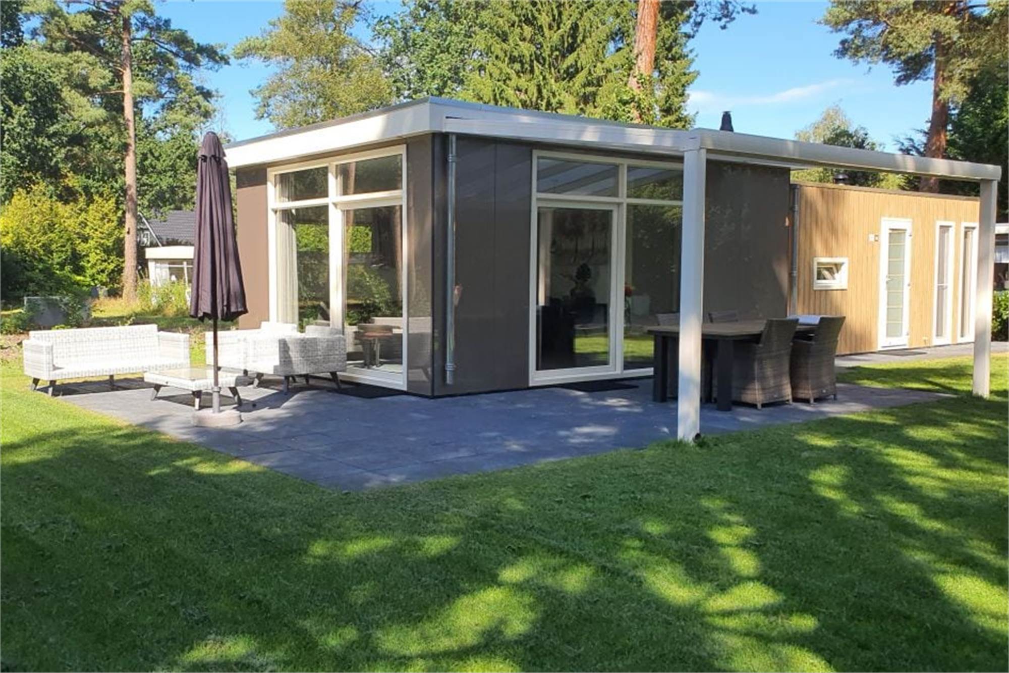 Ce chalet indépendant de plain-pied est adapté pour 4 personnes. La salle de séjour est confortablement aménagée et vous y trouverez la télévision et le lecteur DVD. La cuisine est notamment équipée d'un lave-vaisselle, d'une machine à café à dosettes, d'un micro-ondes combiné et d'un réfrigérateur avec compartiment congélateur. Il y a 2 chambres à coucher, chacune avec 2 lits simples. La salle de bain dispose d'une douche à l'italienne et de toilettes. De plus, le chalet abrite un sauna infrarouge. Dans ce logement, vous pouvez également vous détendre dehors dans le jardin avec terrasse. Des meubles de jardin sont à votre disposition. Il y a des places de stationnement pour votre voiture, près de votre hébergement de vacances. Vous pouvez utiliser le wifi gratuitement.