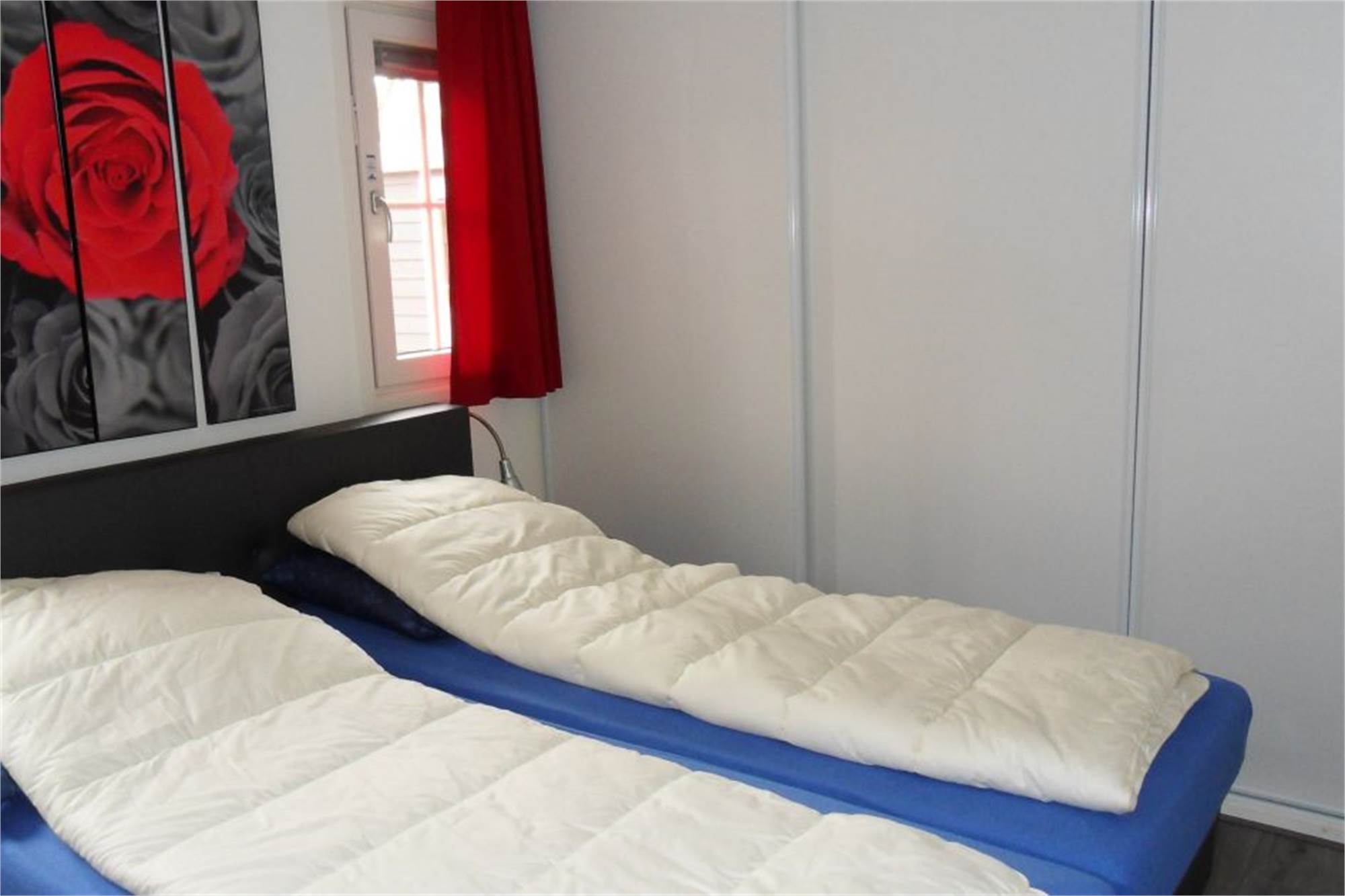 Aménagement : séjour avec coin repas et coin salon et une baie vitrée ensoleillée. Cuisine ouverte avec entre autres micro-ondes combiné et lave-vaisselle. Salle de bains avec lavabo, douche et toilettes séparées. Trois chambres dont avec chacune deux lits simples et une avec lit superposé. Terrasse avec meubles de jardin. Tous les chalets disposent d’un espace de rangement indépendant.