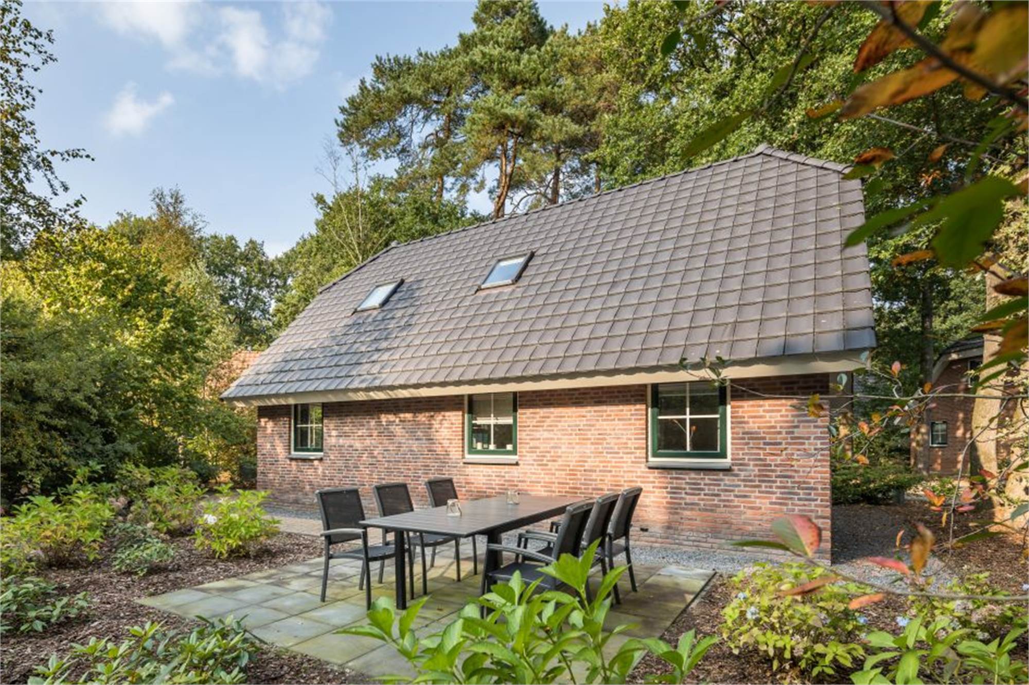 Aménagement : séjour avec cuisine ouverte et portes-fenêtres menant à la terrasse meublée. Toilettes séparées ou toilettes dans la salle de bains. Trois chambres, chacune avec deux couchages, une chambre est située au rez-de-chaussée. Vous disposez de deux salles de bains. Certains bungalows disposent d'un sauna (infrarouge) (voir supplément).