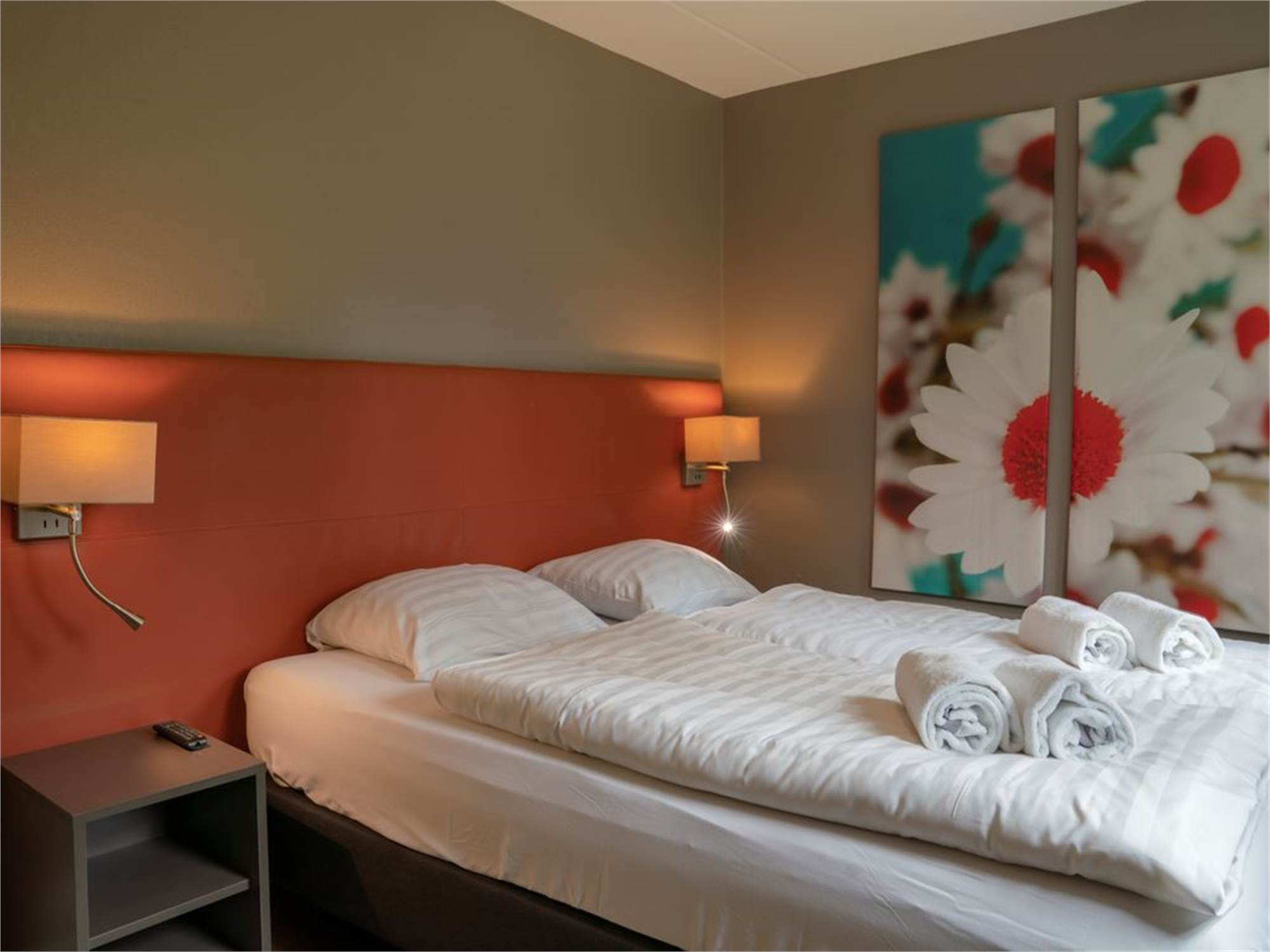 Chambre à coucher avec deux boxsprings Auping 1 personne, couvre-matelas softtoper et tv