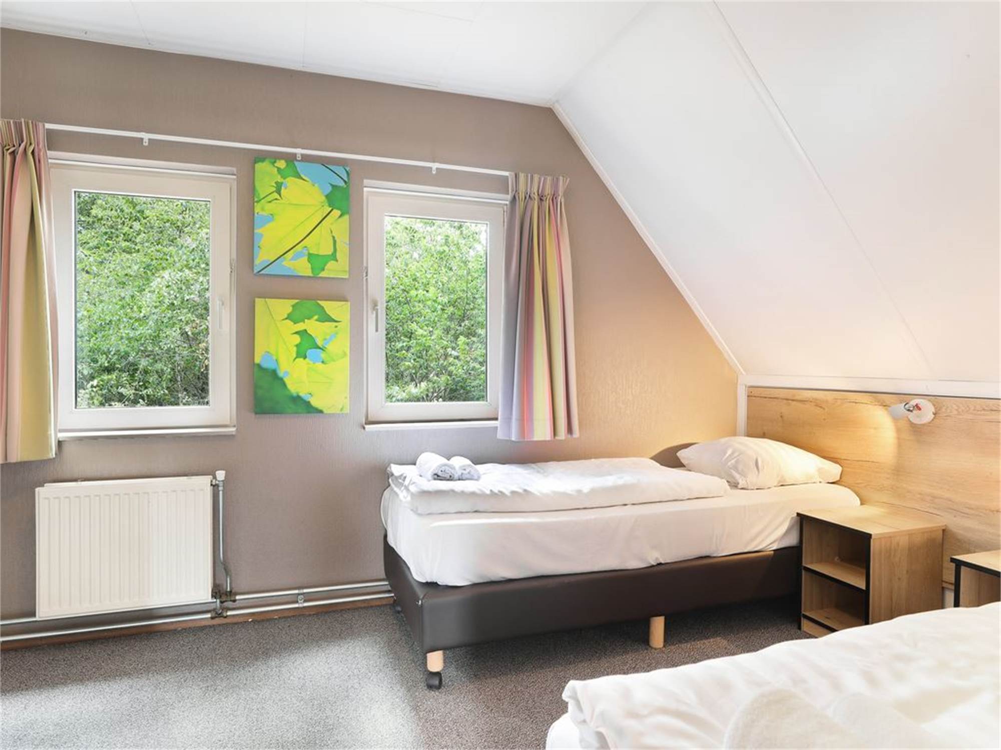 Chambre à coucher avec deux lits boxspring pour 1 personne, surmatelas et téléviseur