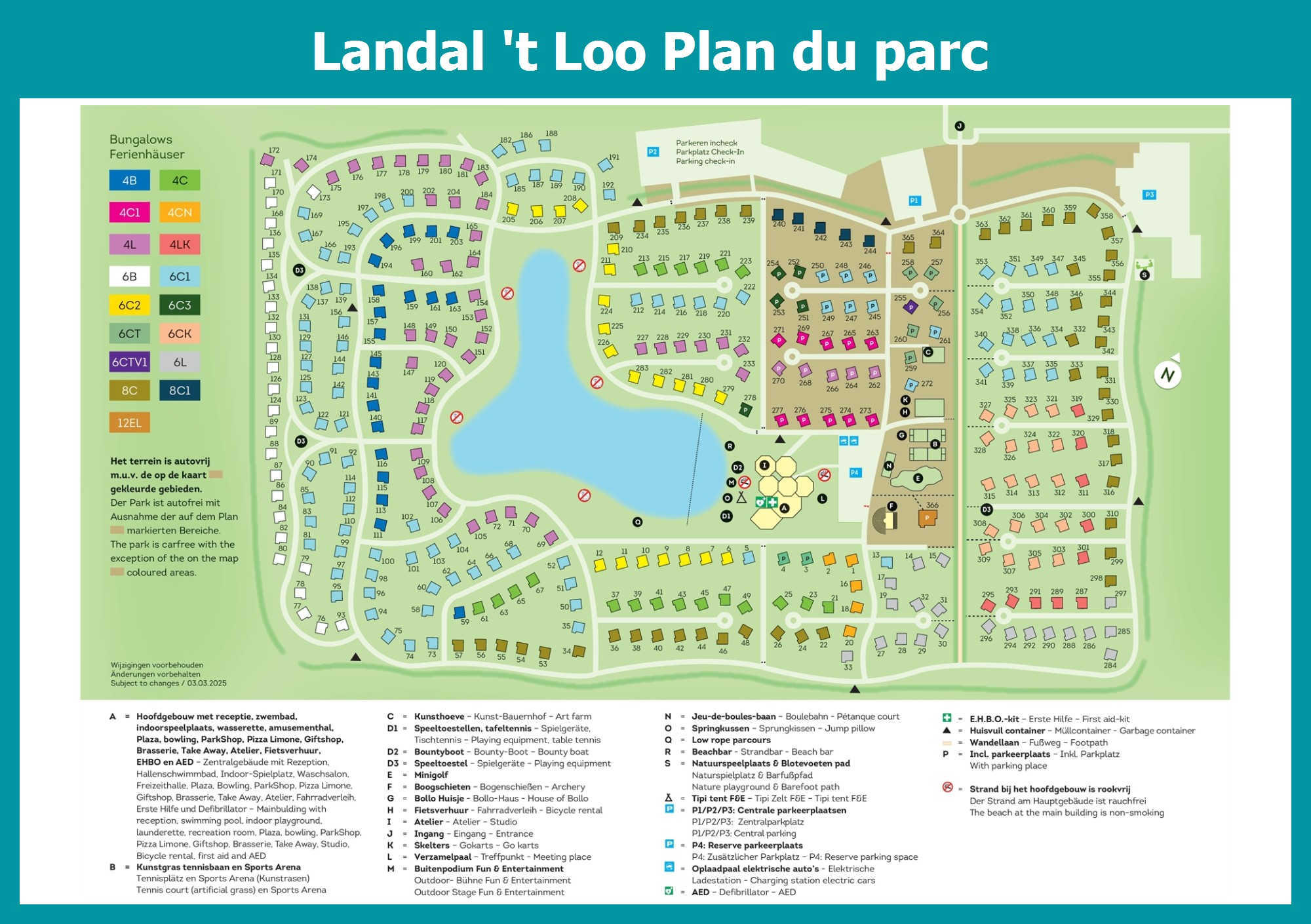 Le plan actuel du Landal 't Loo avec tous les hébergements et installations, est aussi disponible en pdf.