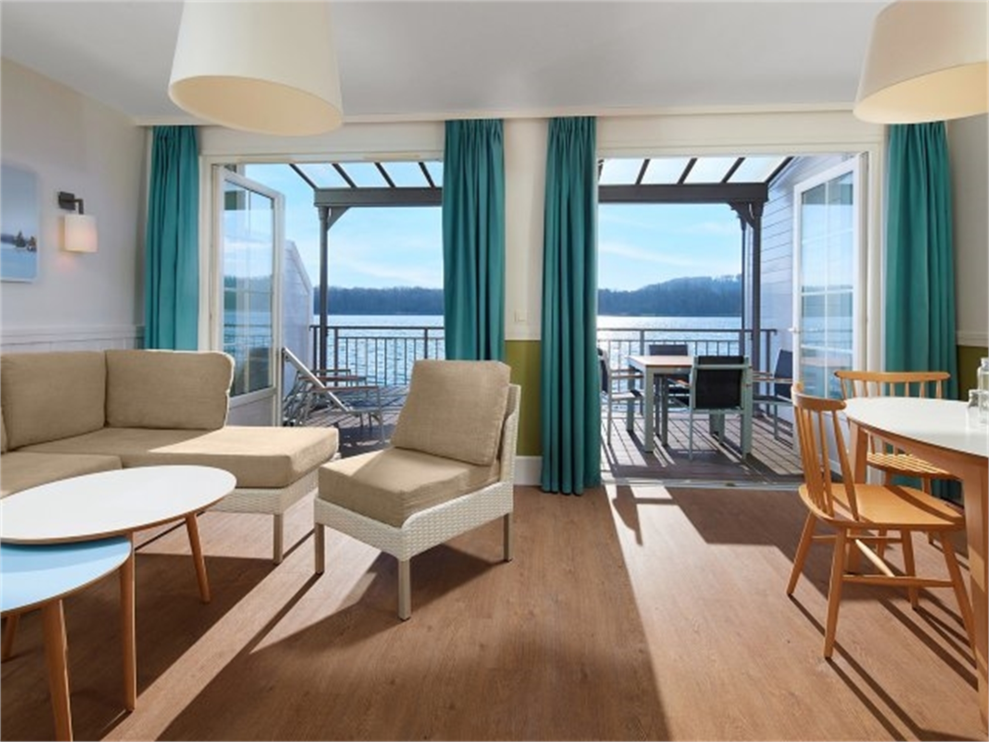 Asseyez-vous sur votre terrasse privée couverte et profitez de la vue panoramique sur le lac. Tous les cottages Lakeside sont situés au bord de l'eau. À l'intérieur aussi vous avez une belle vue, grâce aux grandes fenêtres !