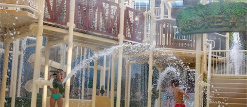 Ne manquez pas l'activité phare de l'Aqua Mundo : l'Arbre à Eau, une plate-forme de jeux aquatiques avec toboggans, pistolets et jets d'eau, ainsi qu'un énorme seau qui déverse, en toute sécurité, 900 litres d'eau sur les baigneurs.
