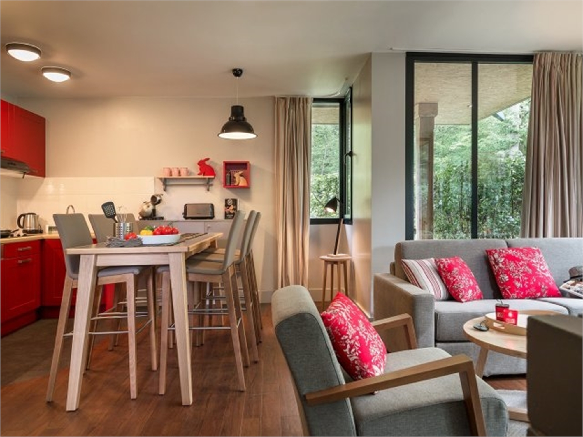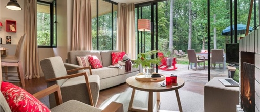 Le nom dit tout : en raison de son architecture particulière, le cottage Pagode a une forme orientale, avec un double toit. Grâce à ses grandes fenêtres, qui sont aussi larges que la pièce et vont du sol au plafond, le cottage est ouvert et lumineux, vous offrant une vue magnifique sur la nature environnante.