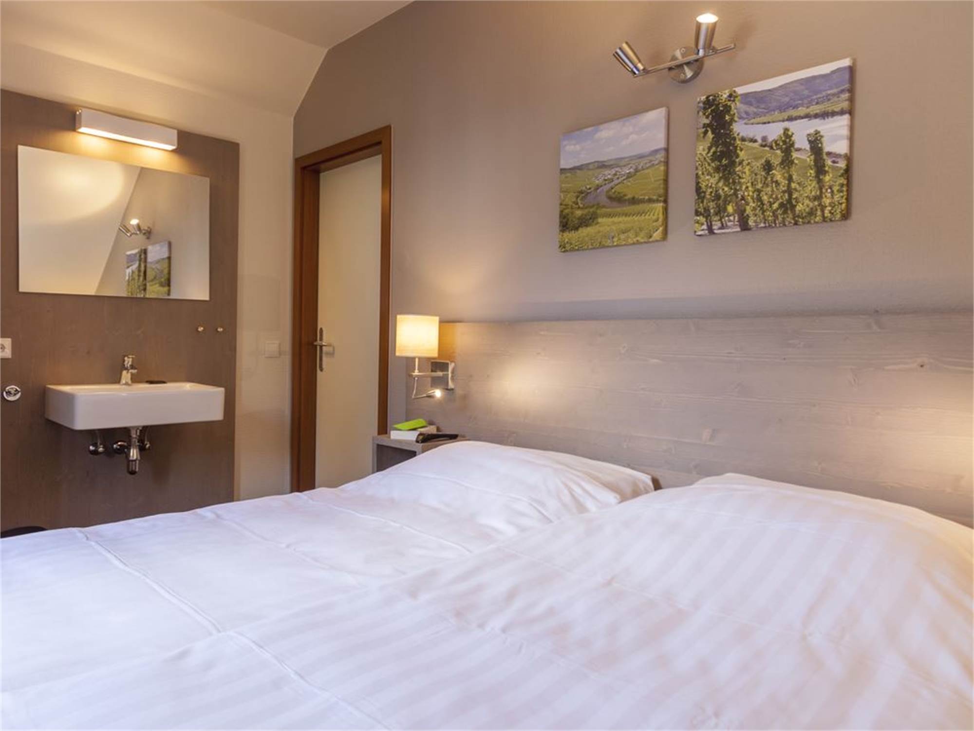 Chambre à coucher avec deux boxsprings et 1 personne et lavabo