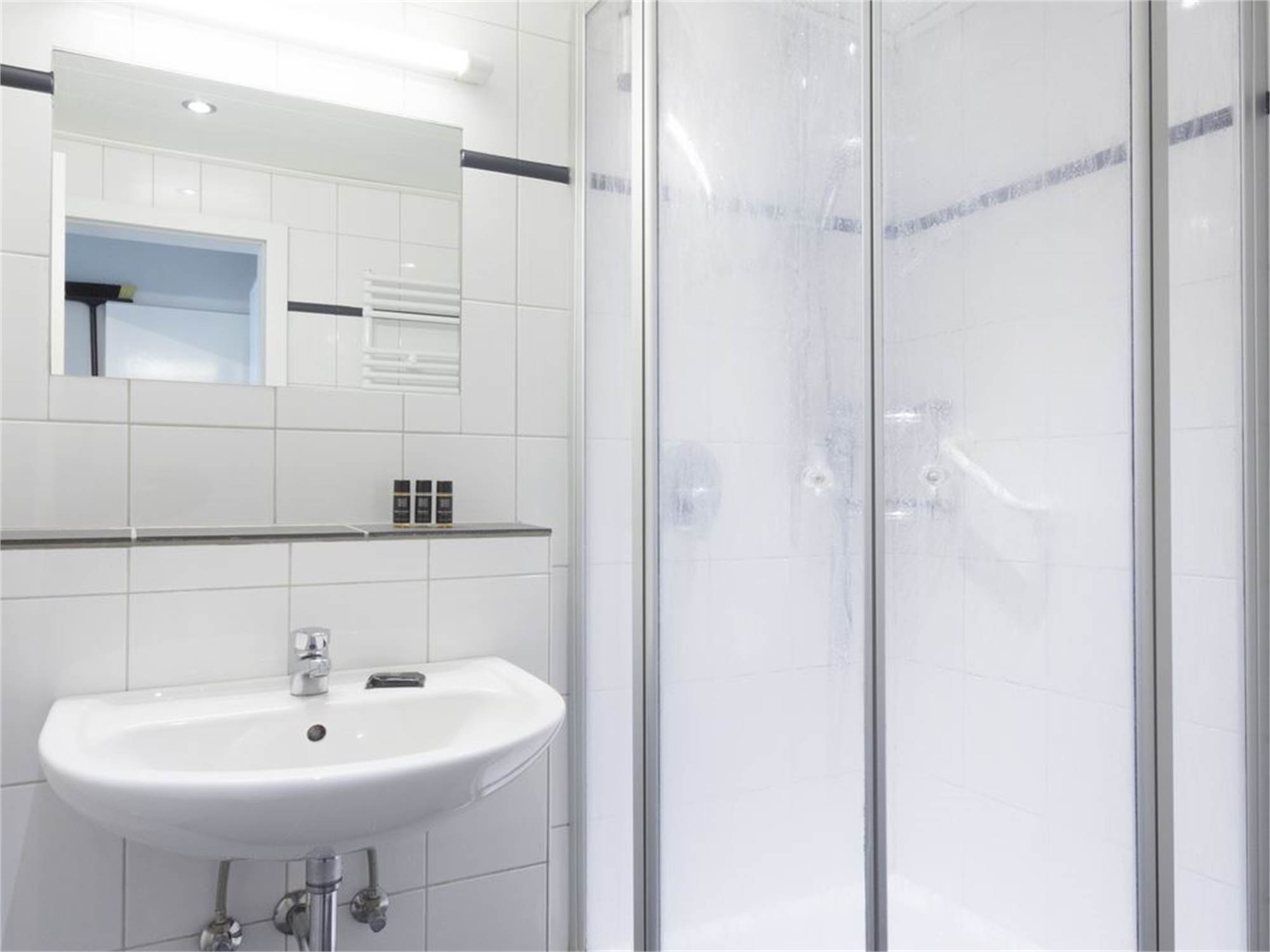Salle de bains avec douche et lavabo